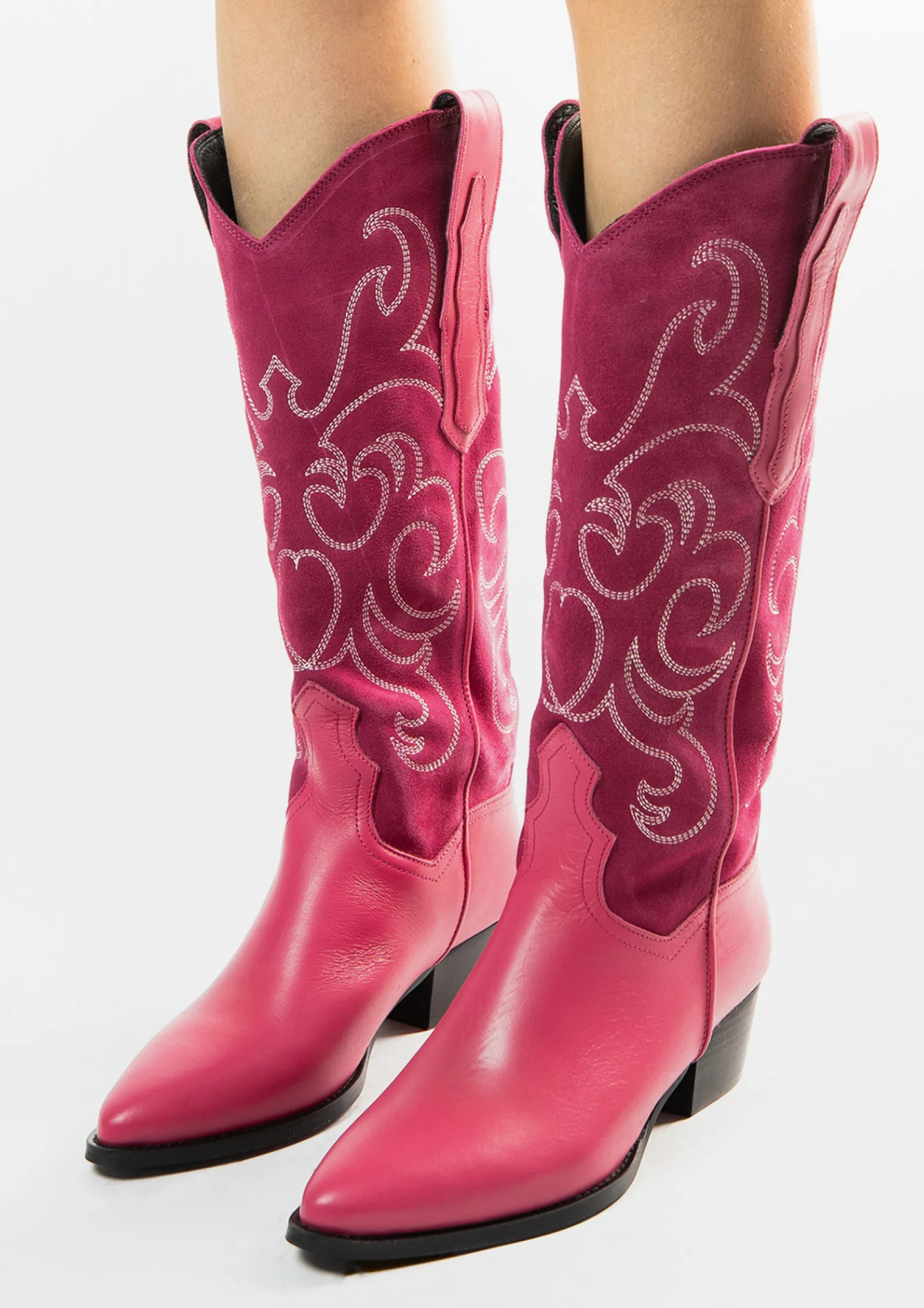 Een Traditioneel Paar Western Boots In Een Opvallende Kleur, Deze Roze Cowboylaarzen Van Sacha Zijn Eyecatchers Of The Season! De Laarzen Zijn Aan De Buitenkant Gemaakt Van Suede En Leer, En Aan De Binnenkant Van Leer. De Boots Zijn Versierd Met Witte Stiksels. De Bijhorende Schachthoogte Is 31 Cm En De Schachtomtrek 38 Cm. De Laarzen Hebben Een Lage Hak Van 5 Cm. Maak Gebruik Van De Juiste Onderhoudsproducten Om De Laarzen Te Verzorgen!