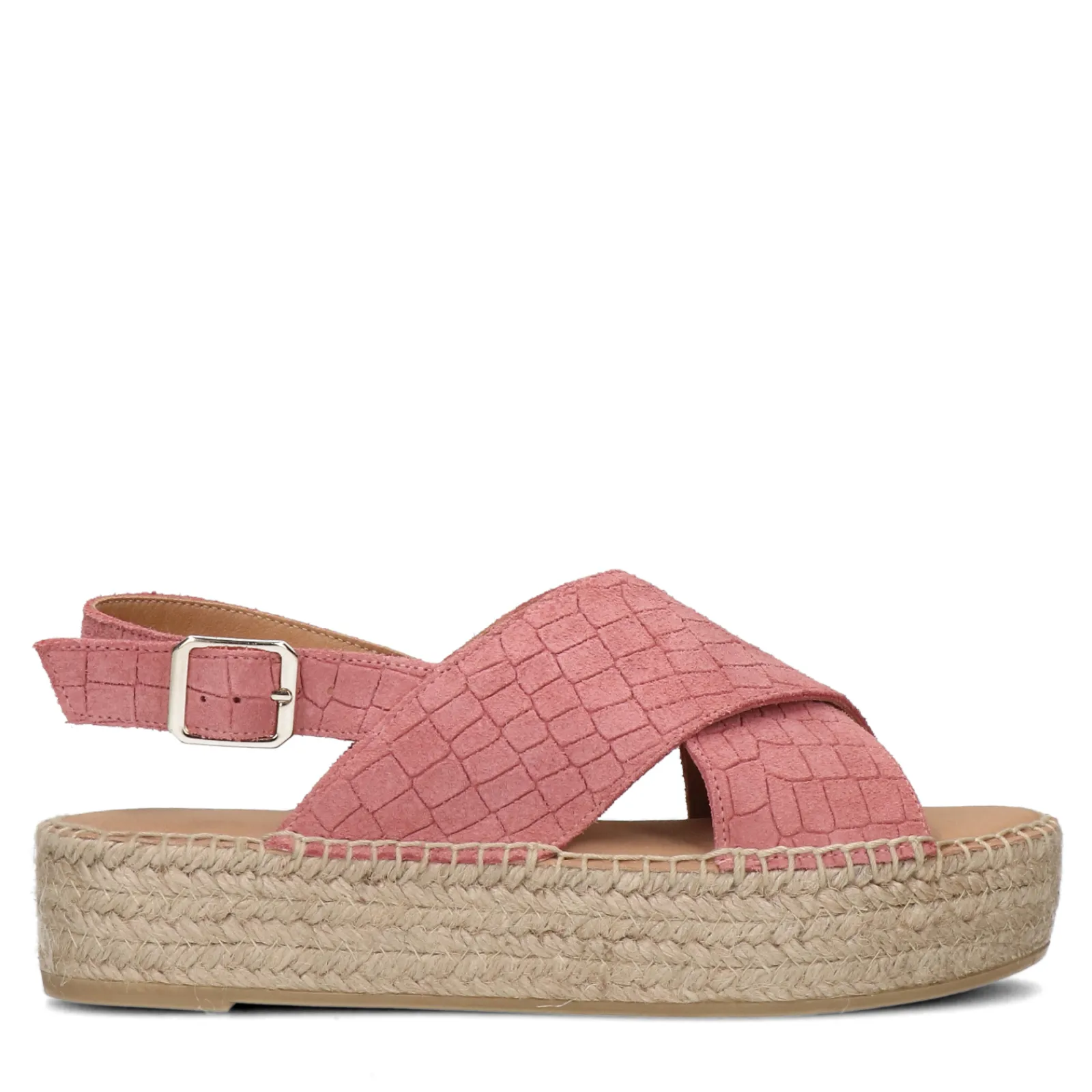 Summer Ready Met Deze Roze Suede Plateau Sandalen Van Sacha! De Sandalen Zijn Aan De Buitenzijde Gemaakt Van Suede En Aan De Binnenzijde Van Leer. De Plateau Zool Is Gemaakt Van Gewoven Touw Met Een Hoogte Van 4 Cm. Het Design Heeft Een Subtiele Croco Print Voor Een Unieke Twist. Maak Gebruik Van De Juiste Onderhoudsproducten!