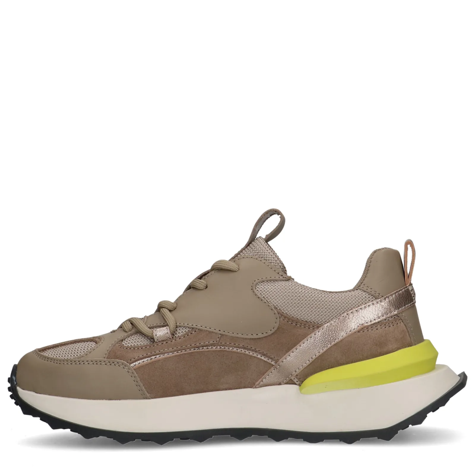 Taupe Leren Sneakers Met Limegroen Detail^Sacha Cheap