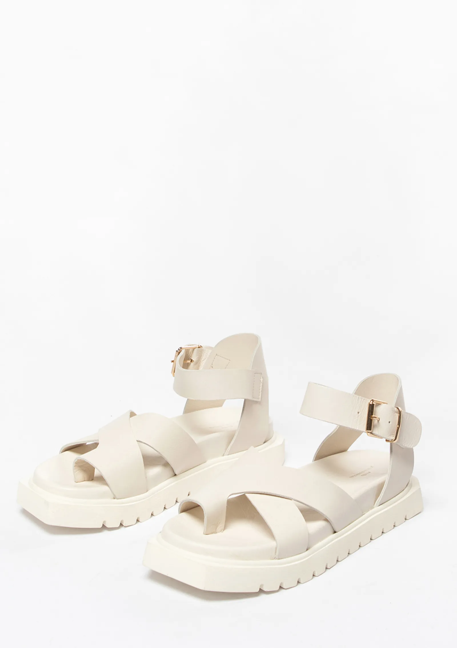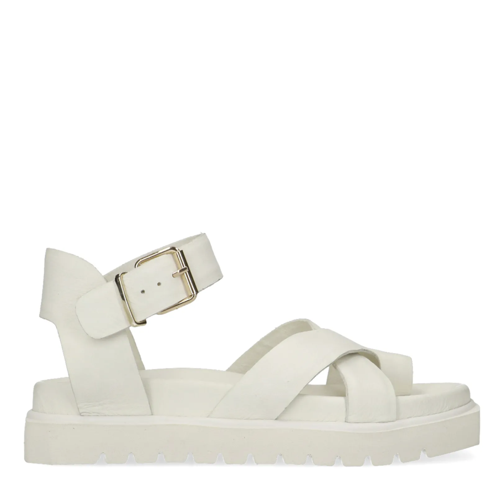 Deze Plateau Sandalen Van Sacha Zijn Trendy En Stoer. Het Witte Leer, De Gekruiste Band En De Gespband Met Goudkleurige Sluiting Zijn Opvallende Kenmerken. De Plateauzool Is 4 Cm Dik. Onderhoud Je Sandalen Met De Juiste Onderhoudsproducten.