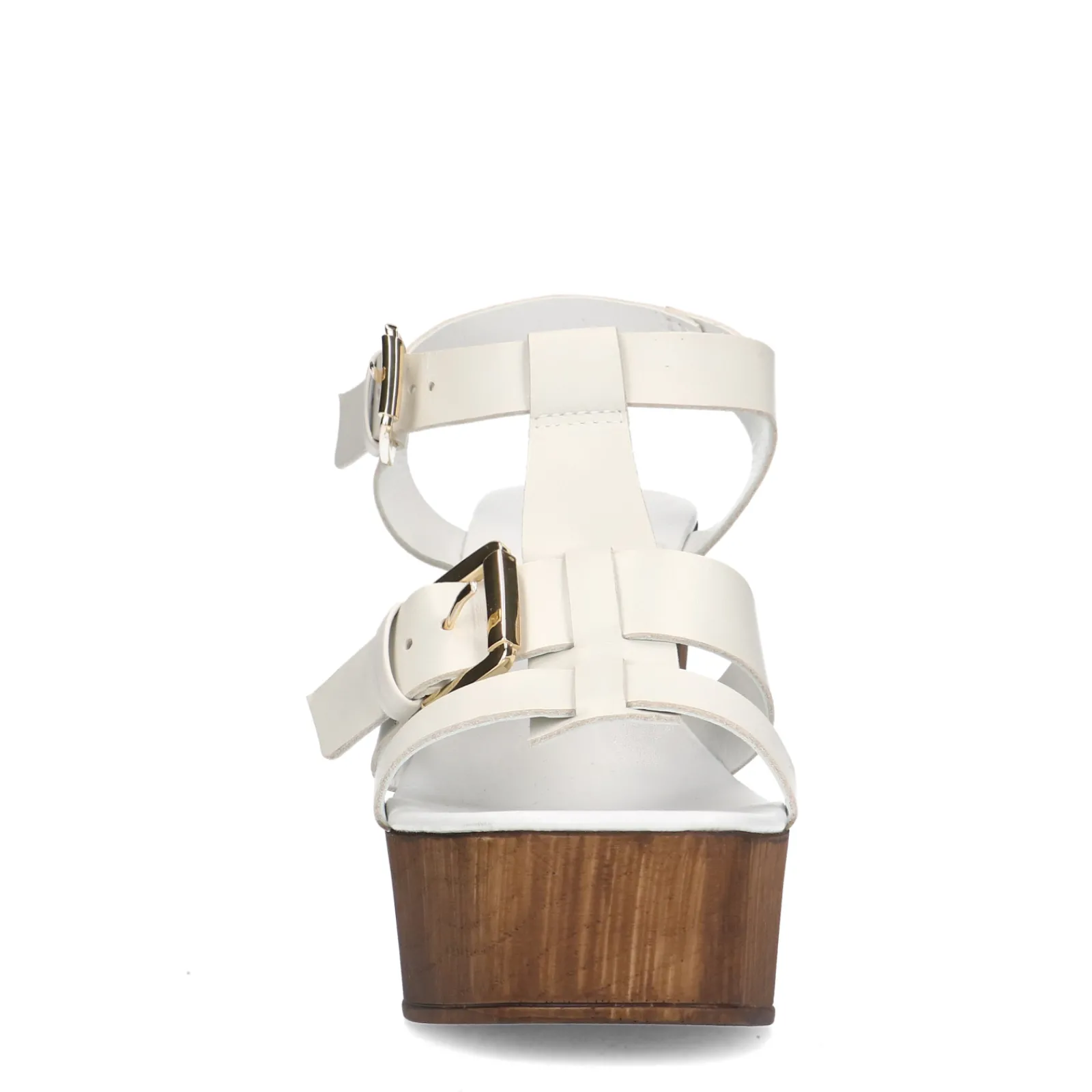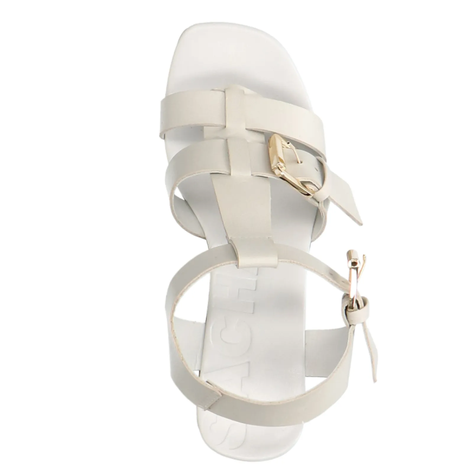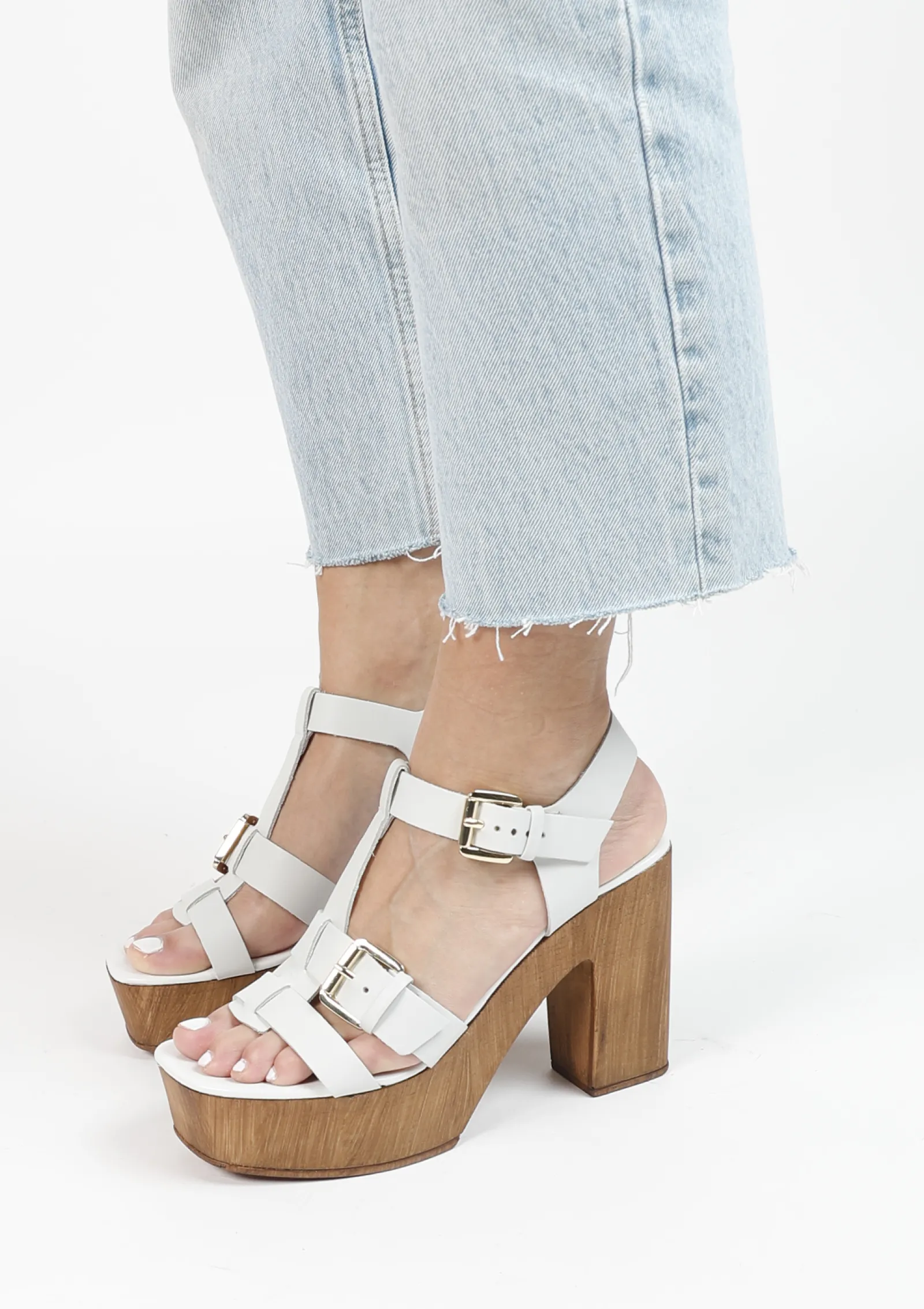 Deze Witte Leren Plateau Sandalen Van Sacha Zijn De Perfecte Schoenen Voor Een Chunky Look! De Sandalen Hebben Witte Leren Banden Met Twee Verstelbare Goudkleurige Gespen. De Chunky Zool Heeft Een Dikte Van 4 Cm Met Een Plateau Hak Van 11 Cm Hoog. Maak Gebruik Van De Juiste Onderhoudsproducten.