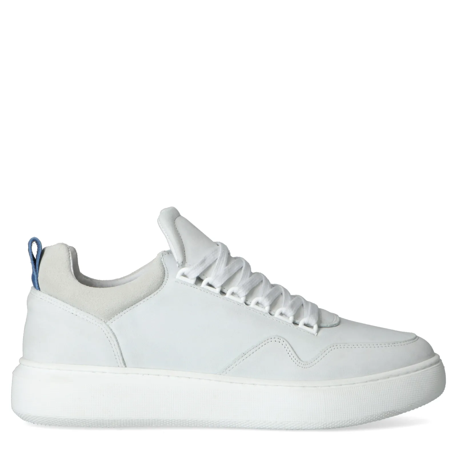 Elke Man Heeft Een Paar Basic Sneakers Nodig! Deze Witte Sneakers Uit De Est. 1909 Collectie Van Sacha Geven Een Sportieve En Casual Twist Aan Je Outfit. De Schoenen Zijn Afgewerkt Met Verschillende Details, Wat De Schoenen Een Stoer Karakter Geven. Zo Is Er Gekozen Voor Materiaal In Verschillende Structuren, Veterogen En Een Opvallende Blauwe Touch Op De Hiel. De Binnenkant Van De Schoenen Is Gemaakt Van Nubuck En De Binnenzijde Is Van Leer. De Witte Zool Heeft Een Plateauhoogte Van 3 Cm En Een Hakhoogte Van 4 Cm. Draag De Sneakers Onder Een Jeans Of Pantalon Met Een Blauwe Sweater Voor Een Stijlvolle Look! Maak Gebruik Van De Juiste Onderhoudsproducten Om De Sneakers Zo Lang Mogelijk Mooi Te Houden, Bijvoorbeeld De Pure Protect 300 Ml.