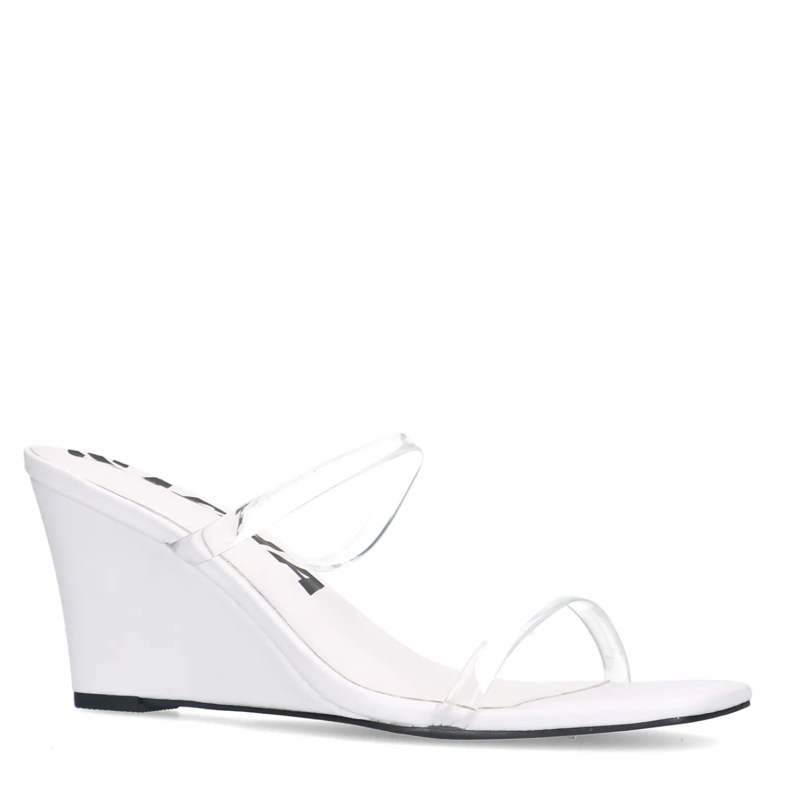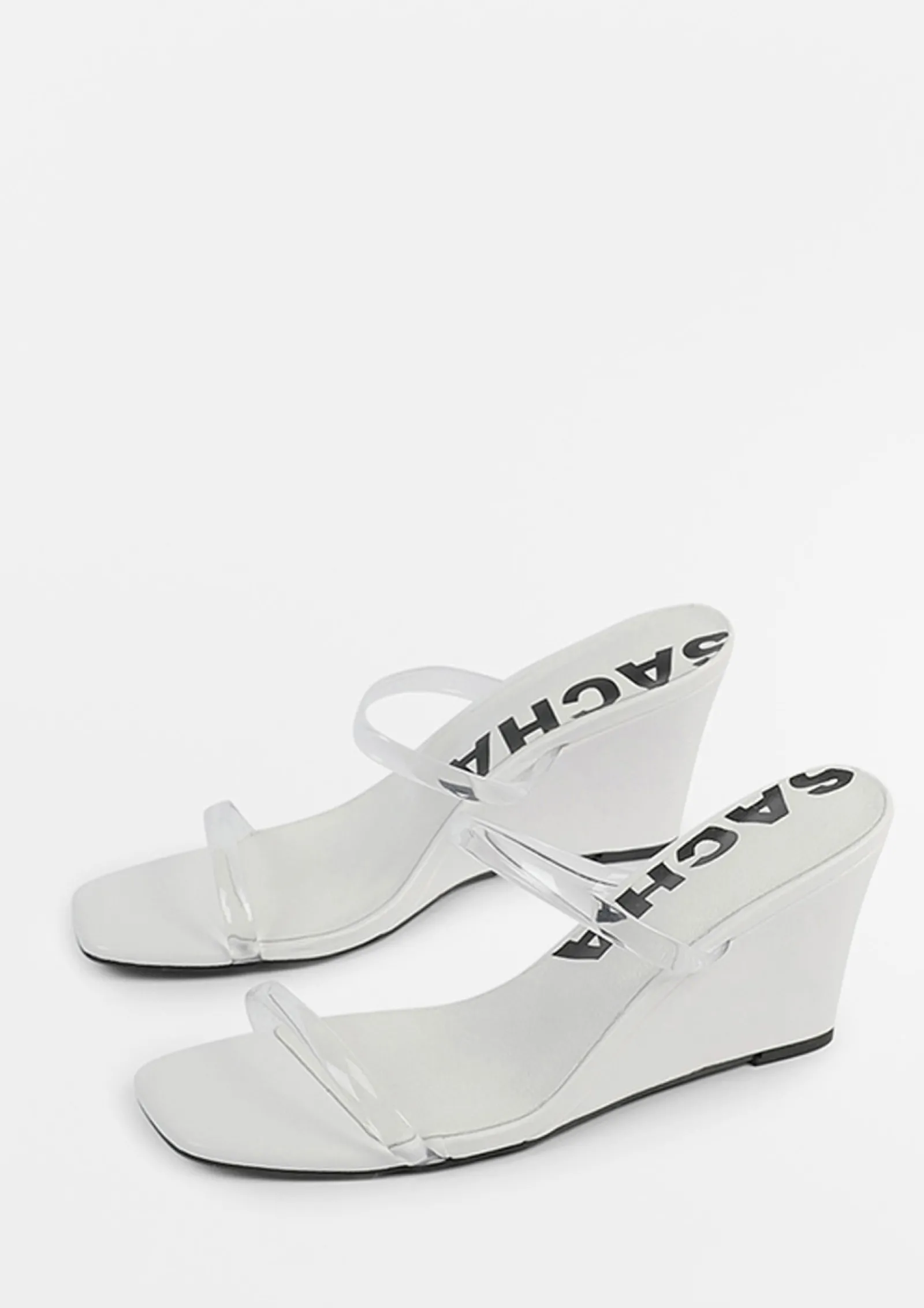 Deze Witte Wedge Sandalen Van Sacha Zijn Echte Eyecatchers! De Sandalen Zijn Gemaakt Van Synthetisch Materiaal En Hebben Een Sleehak Van 8 Cm Hoog. Over De Voet Lopen Twee Doorzichtige Bandjes Van 1 Cm Dik. Maak Gebruik Van De Juiste Onderhoudsproducten.