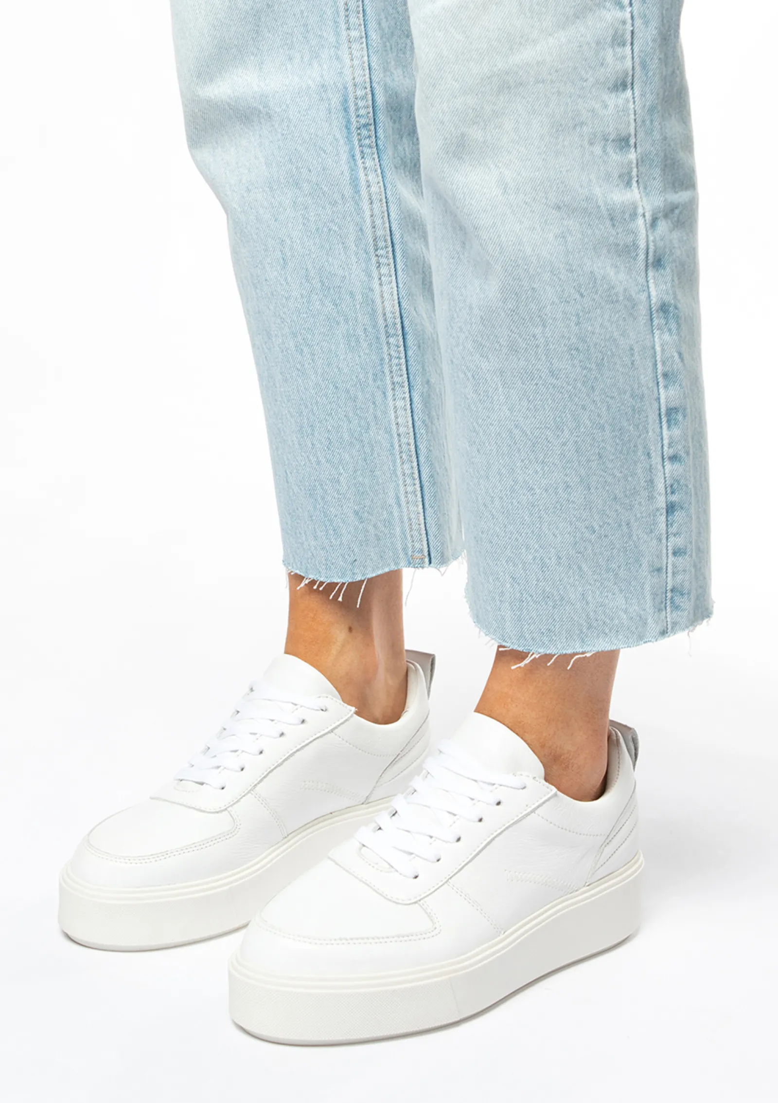 Deze Witte Sneakers Passen Bij Iedere Outfit! De Plateauzool En Leren Details Op De Hak Geven De Schoenen Een Stoere Uitstraling. De Sneakers Zijn Aan De Binnen- En Buitenkant Gemaakt Van Leer, Wat Zorgt Voor Een Optimaal Loopcomfort. De Plateauzool Van De Schoenen Is Circa 4 Centimeter Hoog. Deze Schoenen Combineer Je Zo Met Elke Outfit, Bijvoorbeeld Met Een Mom Jeans En Fijne Sweater Voor Een Comfy Uitstraling.