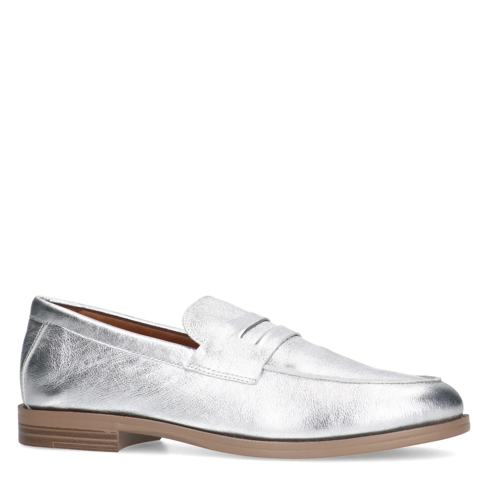 Voeg Deze Zilverkleurige Penny Loafers Van Sacha Toe Aan Jouw Loafer Collectie. De Combinatie Van De Zilverkleurige Kleur En Het Klassieke Penny Loafer Model Geeft De Loafers Een Trendy Look. De Loafers Zijn Aan De Binnen- En Buitenkant Gemaakt Van Leer. De Loafers Hebben Een Hakhoogte Van 2 Cm En Een Zooldikte Van 1 Cm. Maak Gebruik Van De Juiste Onderhoudsproducten.
