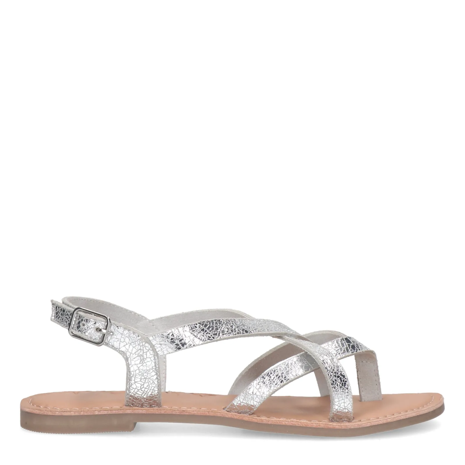 Zilveren Leren Sandalen Met Gekruiste Bandjes^Sacha Fashion