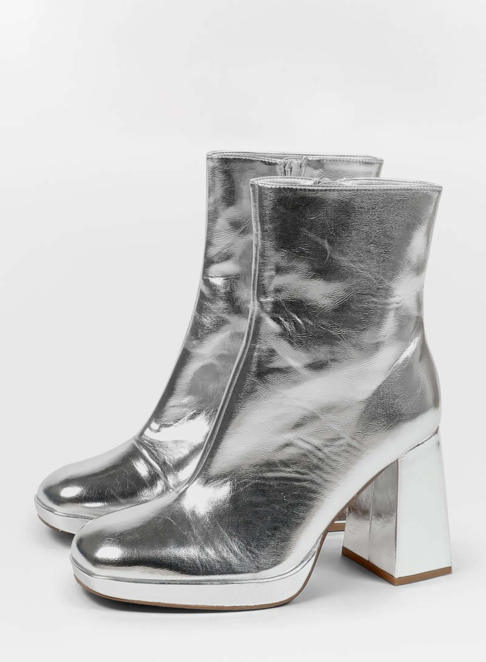 Zilveren Metallic Enkellaarsjes Met Hak^Sacha Store