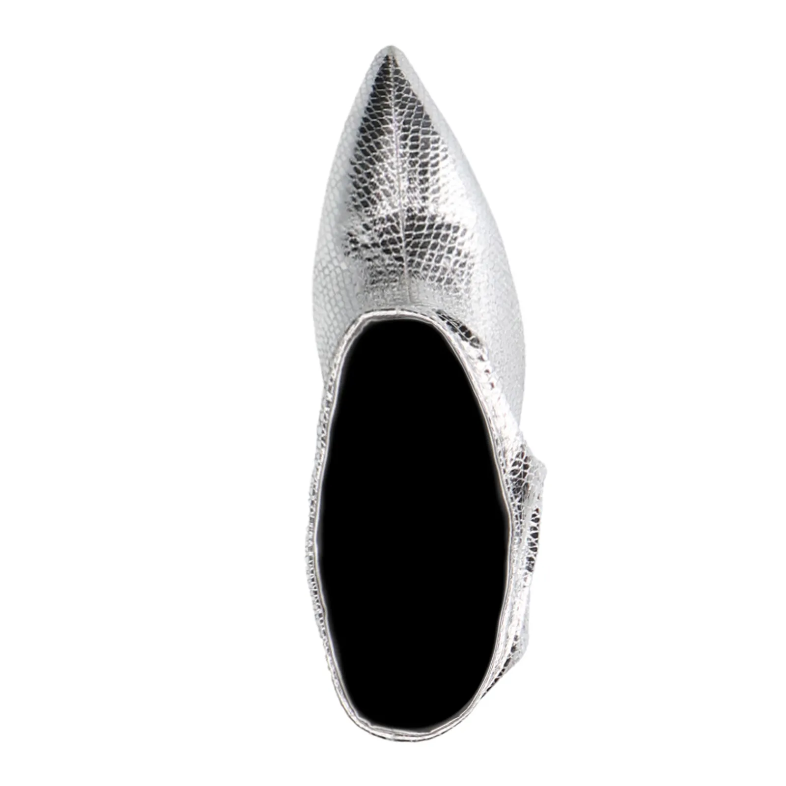 Zilveren Metallic Enkellaarsjes Met Naaldhak^Sacha Best