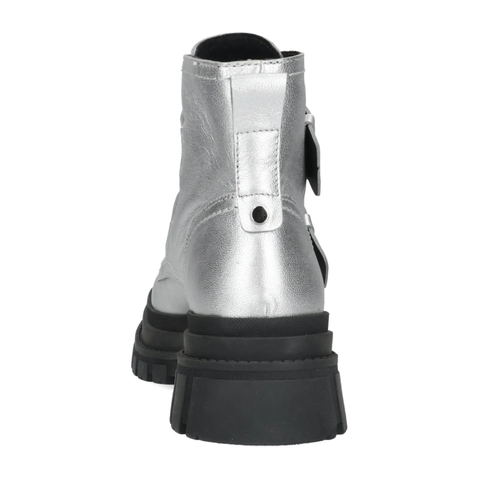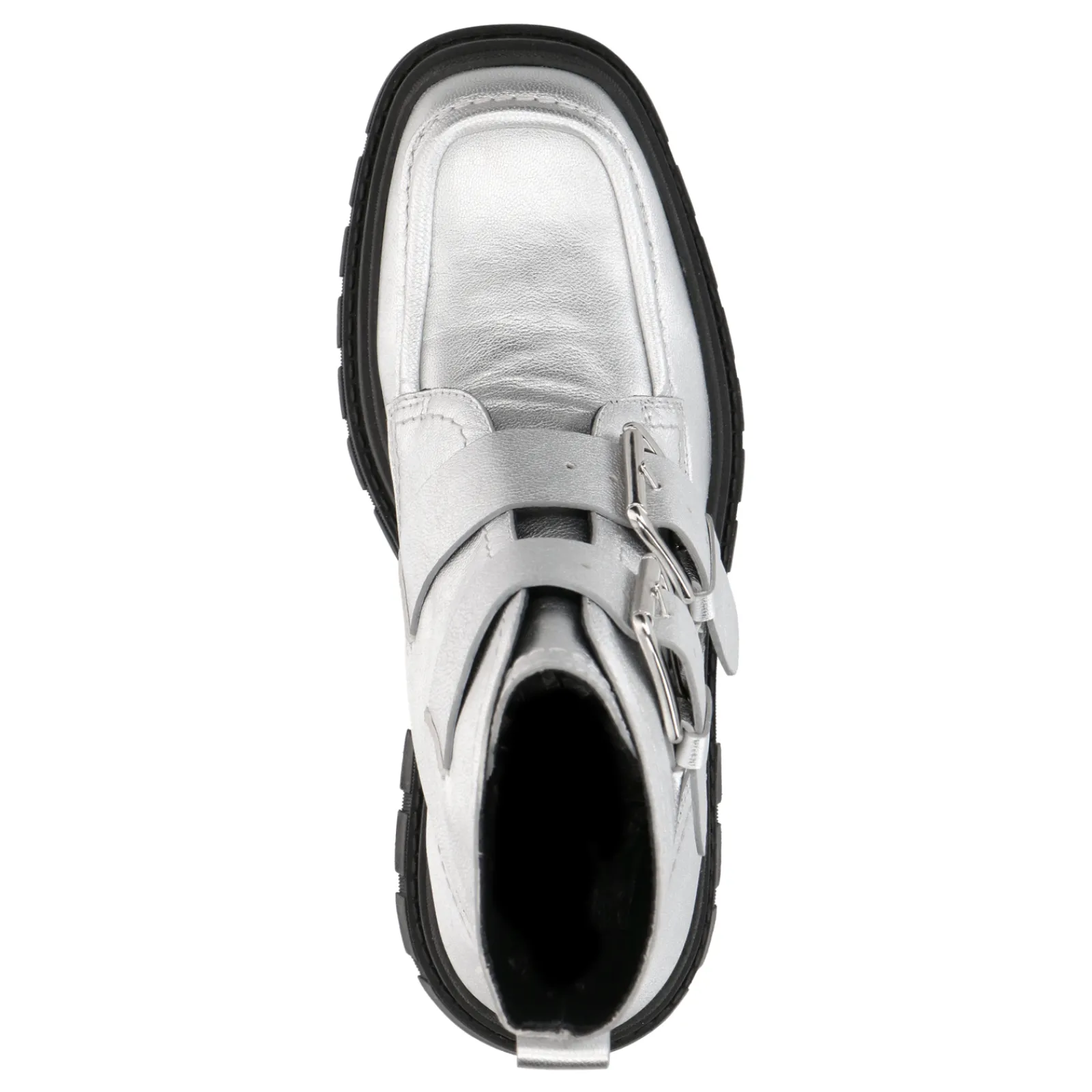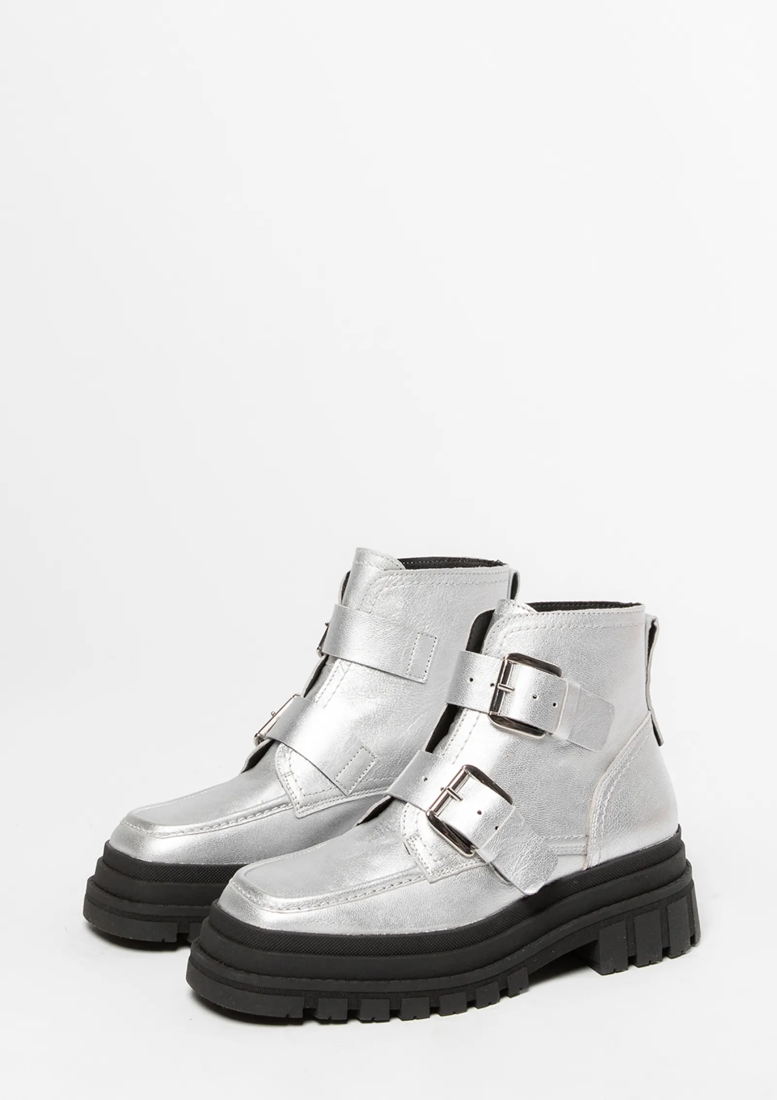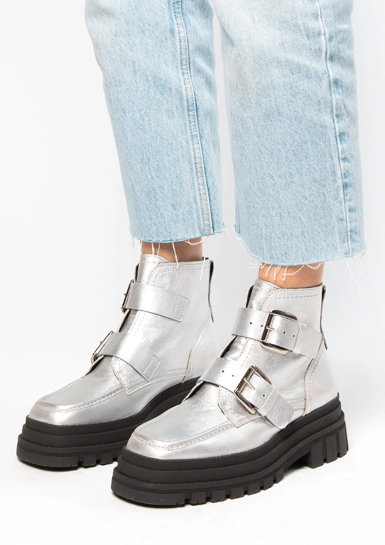 Zilverkleurige Biker Boots Met Gespen^Sacha Fashion
