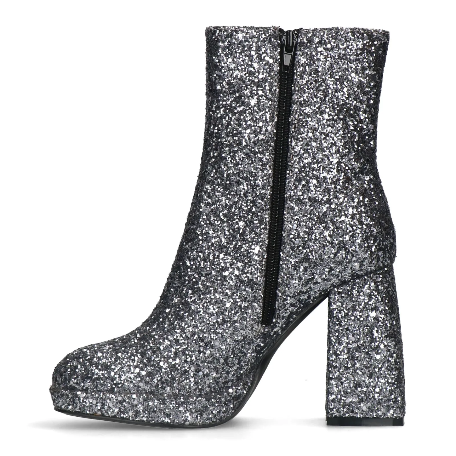Zilverkleurige Glitter Enkelboots Met Hak^Sacha New