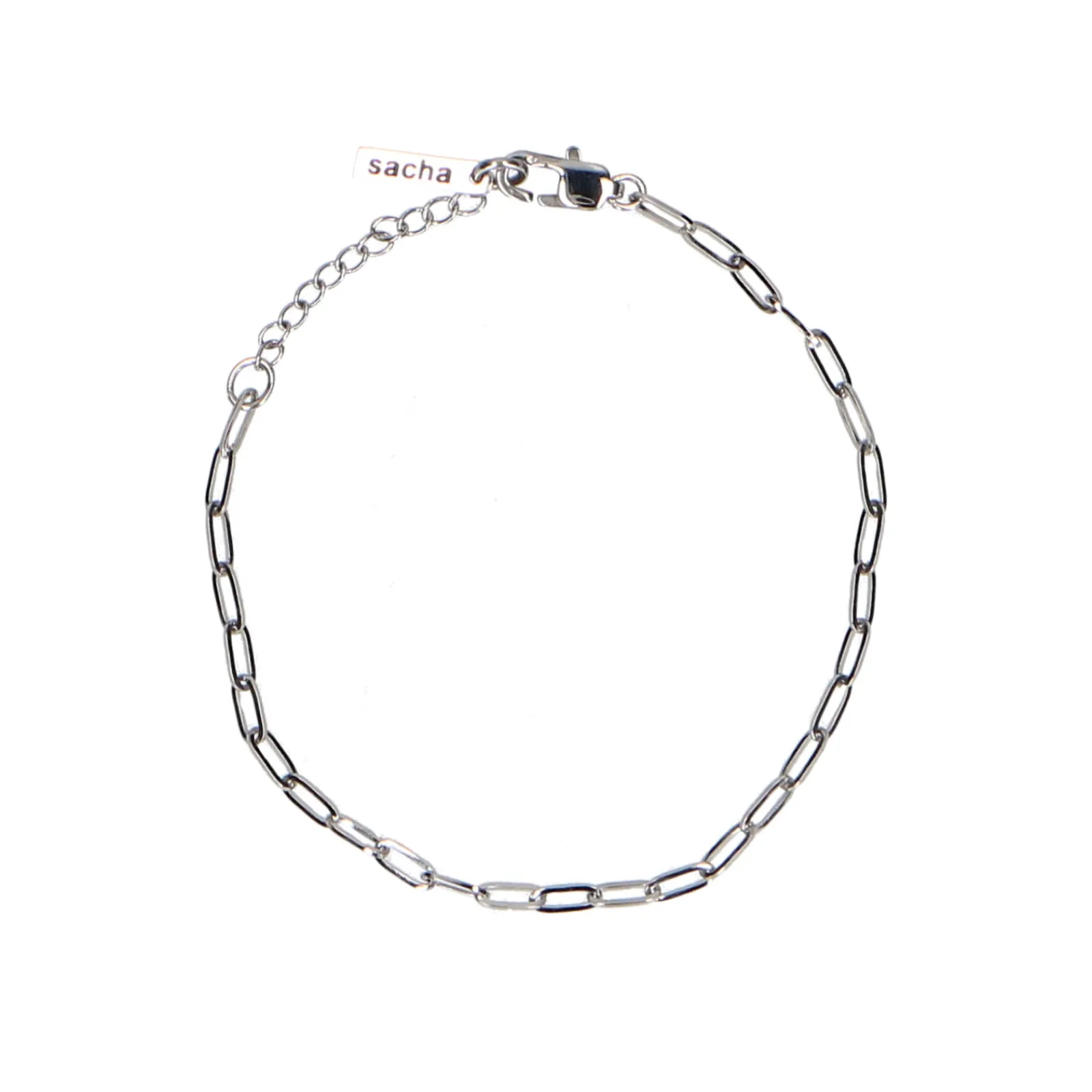 Zilverkleurige Stainless Steel Armband Van Sacha. De Armband Heeft Een Design Met Kleine Schakels En Een Totale Lengte Van 20 Cm.