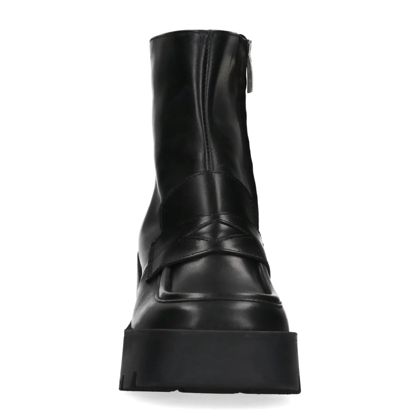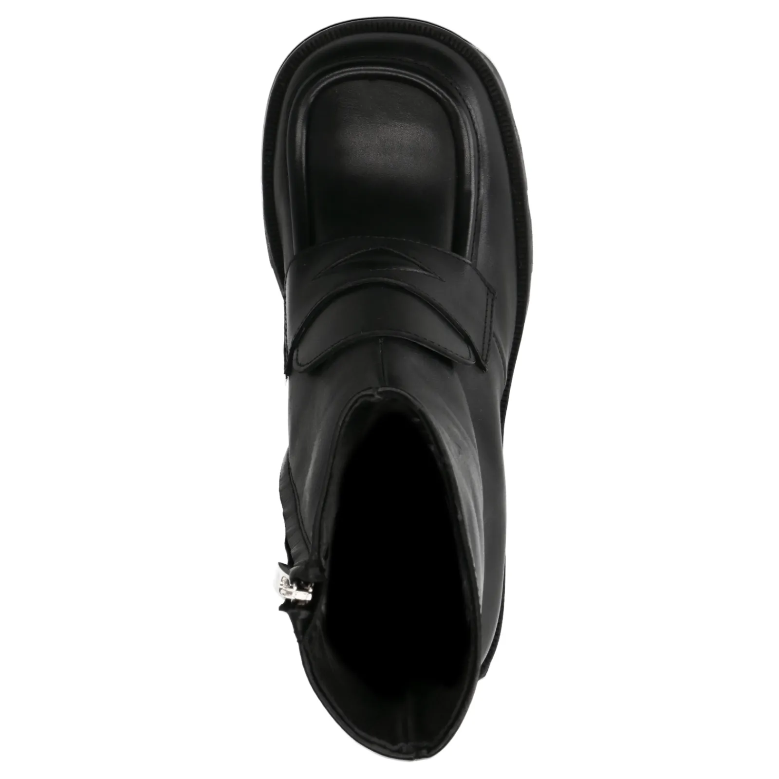 Zwarte Leren Chunky Enkellaarsjes Van Sacha. De Binnen- En Buitenkant Zijn Volledig Gemaakt Van Leer. Aan De Binnenzijde…