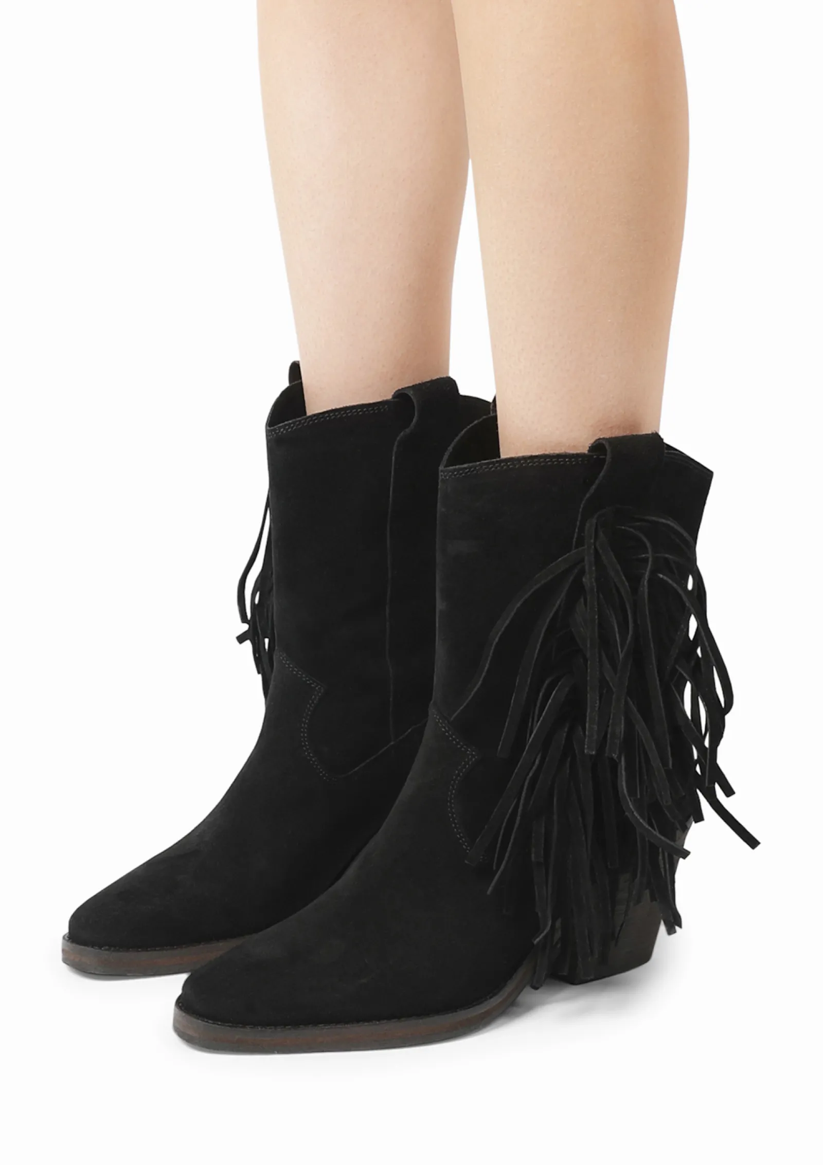 Fringe-On! Deze Lage Enkellaarsjes Met Hak Hebben Een Western Design In Combinatie Met Korte Franjes Aan De Buitenzijde. De Boots Zijn Aan De Buitenzijde Gemaakt Van Suede En Aan De Binnenkant Van Leer. Hierbij Hoor Een Schuin Aflopende Hak Van 8 Cm. Hierbij Hoort Een Schachtomtrek Van 26 Cm En Een Schachthoogte Van 16 Cm. Maak Gebruik Van De Juiste Onderhoudsproducten!