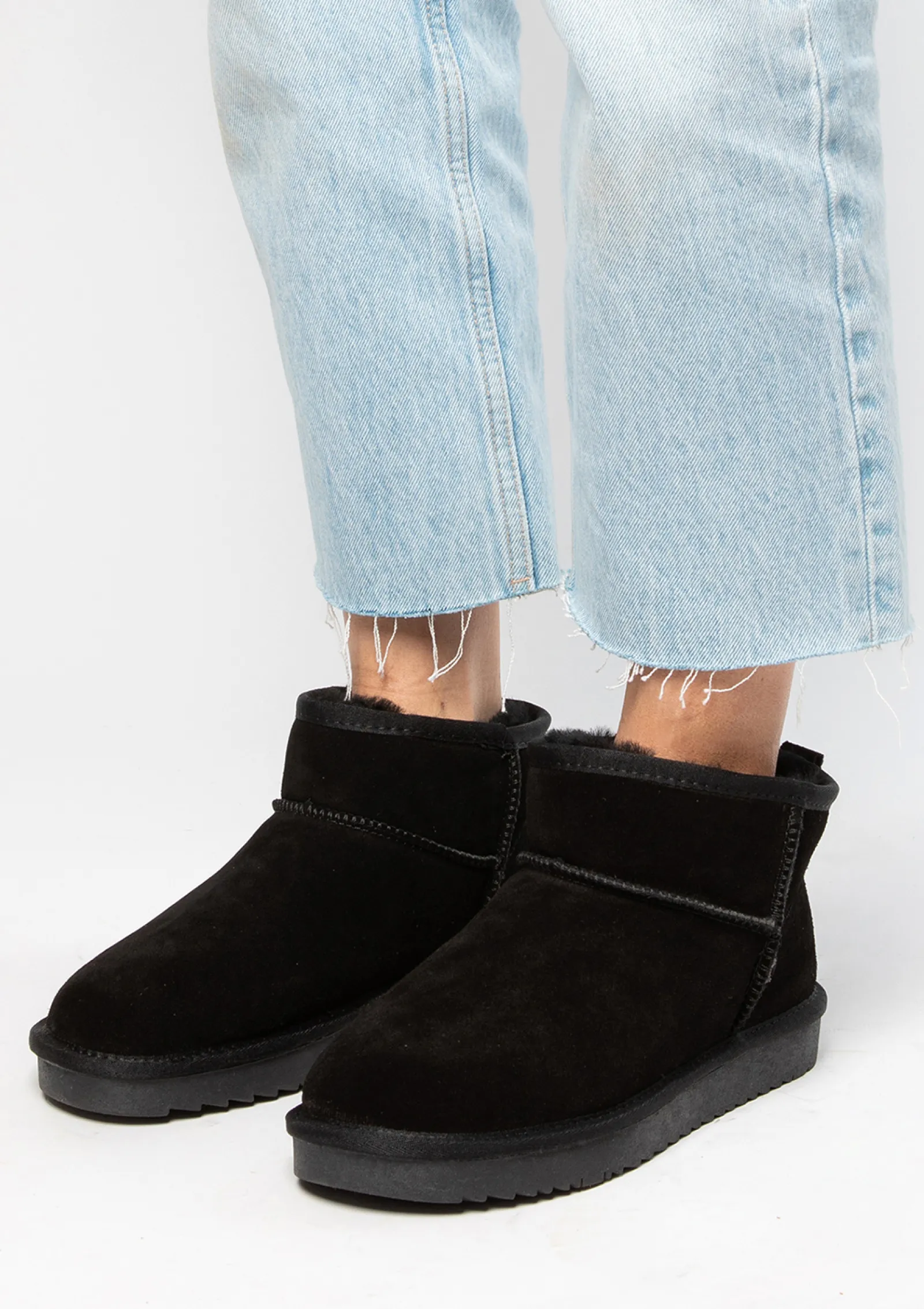 Deze Zwarte Lage Enkelboots Van Sacha Zijn Heerlijk Voor Het Winterseizoen! De Lage Laarsjes Zijn Aan De Buitenkant Gemaakt Van Suede Met Een Binnenkant Van Zwart Wol. De Boots Hebben Een Schachthoogte Van 9 Cm, Een Schachtomtrek Van 36 Cm En Een Plateauzool Van 2 Cm Dik. Maak Gebruik Van De Juiste Onderhoudsproducten Om Lang Te Genieten Van Deze Warme Boots!