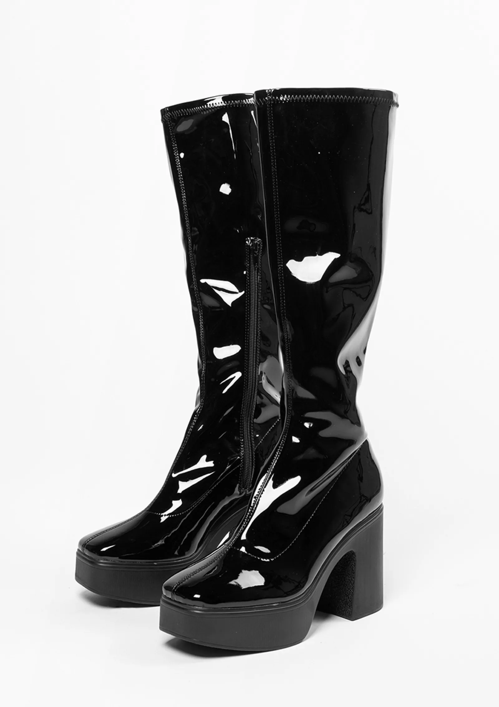 Met Deze Zwarte Hoge Lak Laarzen Van Sacha Steel Jij Absoluut De Show! De Laarzen Hebben Een Plateauzool En Blokhak Die Je Helemaal Terrugbrengen Naar ’70S. De Zool Heeft Een Hoogte Van 4 Cm En De Hak Een Hoogte Van 11 Cm. De Schachthoogte Is 38 Cm En De Schachtomtrek 36 Cm. De Laarzen Hebben Een Korte Rits Aan De Binnenkant. Maak Gebruik Van Onderhoudsproducten Zoals Collonil Carbon Pro Of Balanced Care!