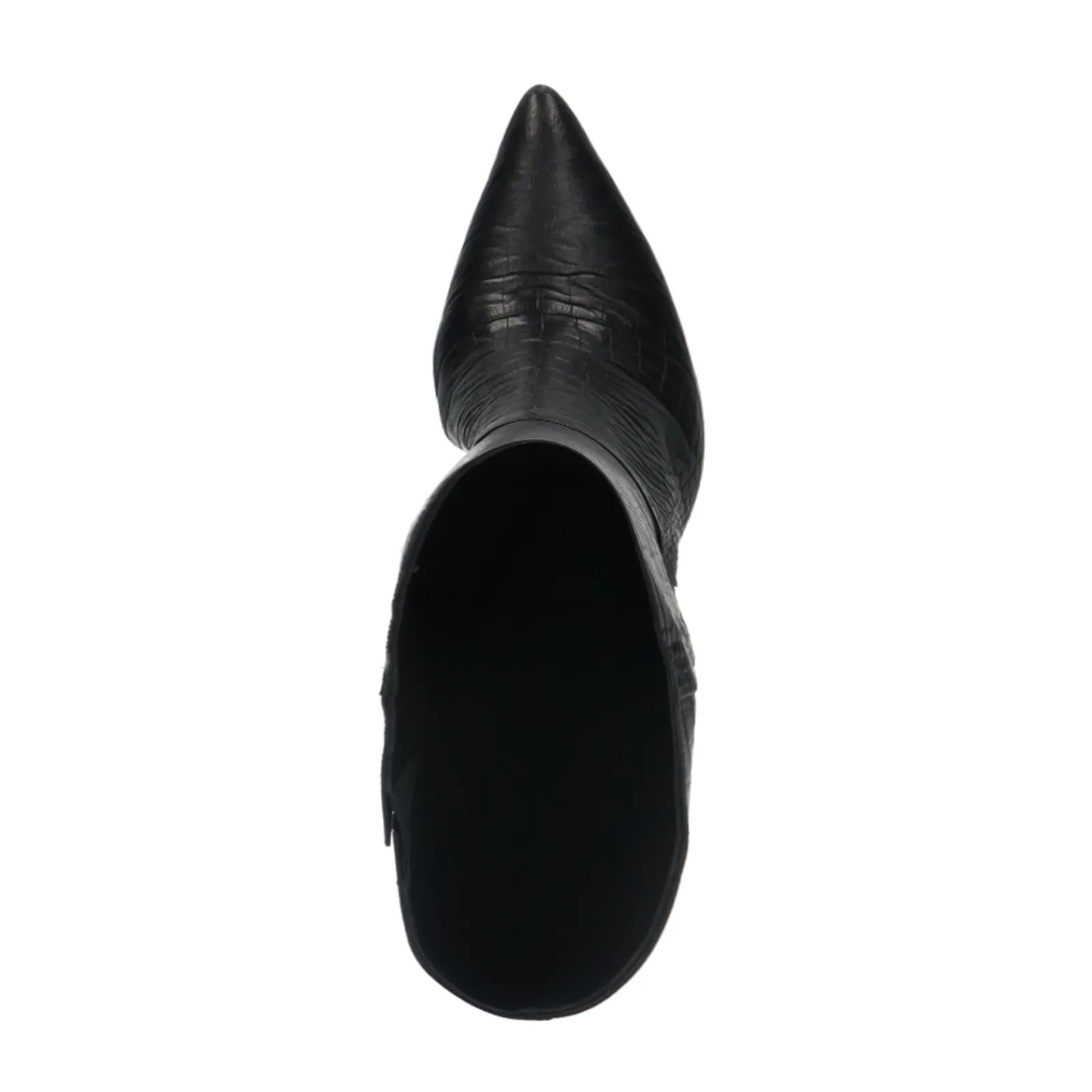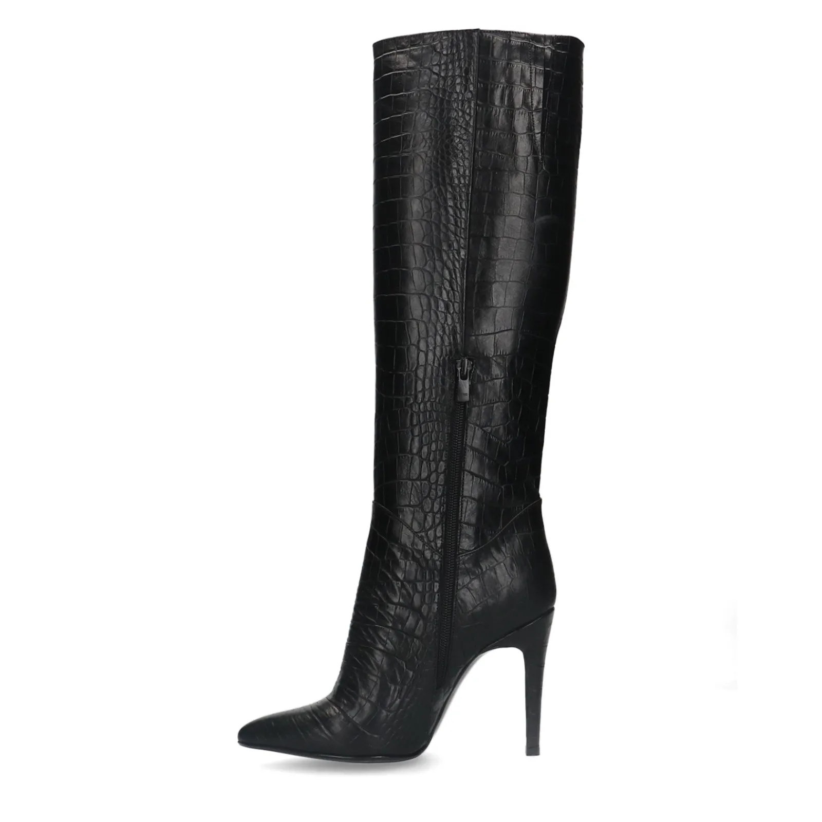 Zwarte Hoge Leren Laarzen Met Crocoprint^Sacha Store