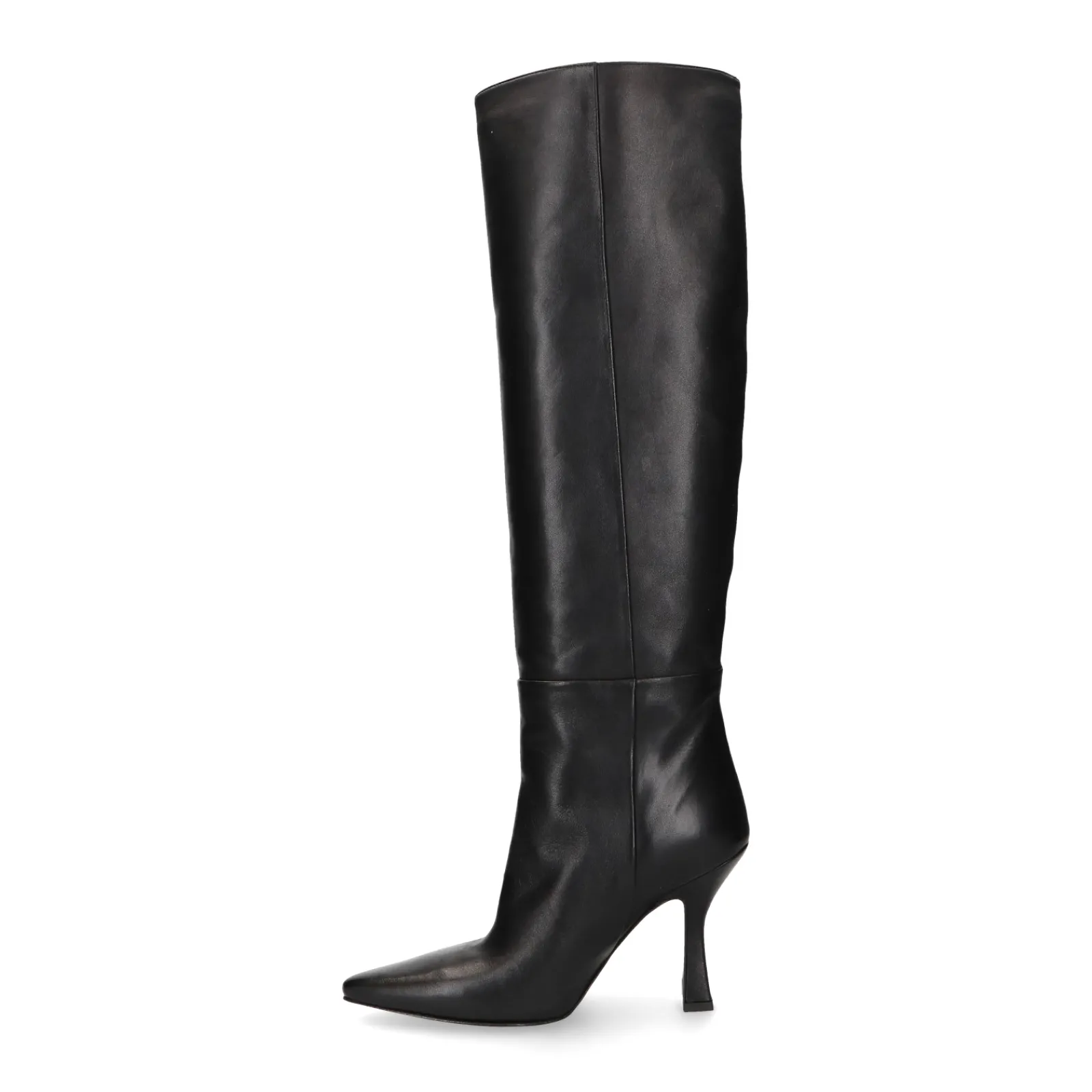 The Sky Is The Limit Met Deze Hoge Laarzen Uit De Women Premium Collectie Van Sacha. Deze Hoge Laarzen Hebben Door Hun Puntige Neus En Aflopende Hak Een Stijlvol Karakter. Ze Zijn Aan De Buitenkant Gemaakt Van Leer En Bestaan Aan De Binnenkant Uit Een Synthetisch Materiaal. De Schachthoogte Van De Laarzen Is 44 Cm En De Schachtomtrek Is 40 Cm. De Hak Is 10 Cm Hoog. Draag Deze Beauties Onder Een Bodycon Jurk Voor Een Classy Outfit.