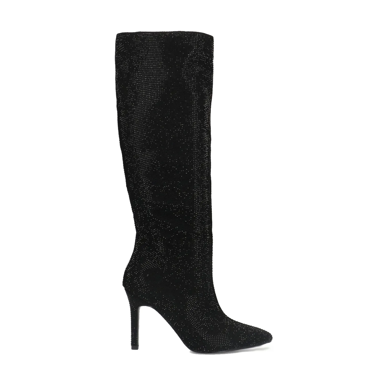 Deze Knie Hoge Laarzen Van Sacha Zijn Geheel Design Met Schitterende Strass Steentjes., Vanaf De Naaldhak Tot De Hoge Schacht! De Laarzen Hebben Een Puntige Neus En Een Naaldhak Van 10 Cm. De Hoge Laarzen Hebben Een Schachtomtrek Van 40 Cm En Een Schachthoogte Van 40 Cm. Deze Rhinestone Boots Zijn Zeker Weten Jouw Nieuwe Eyecatchers! Maak Gebruik Van De Juiste Onderhoudsproducten