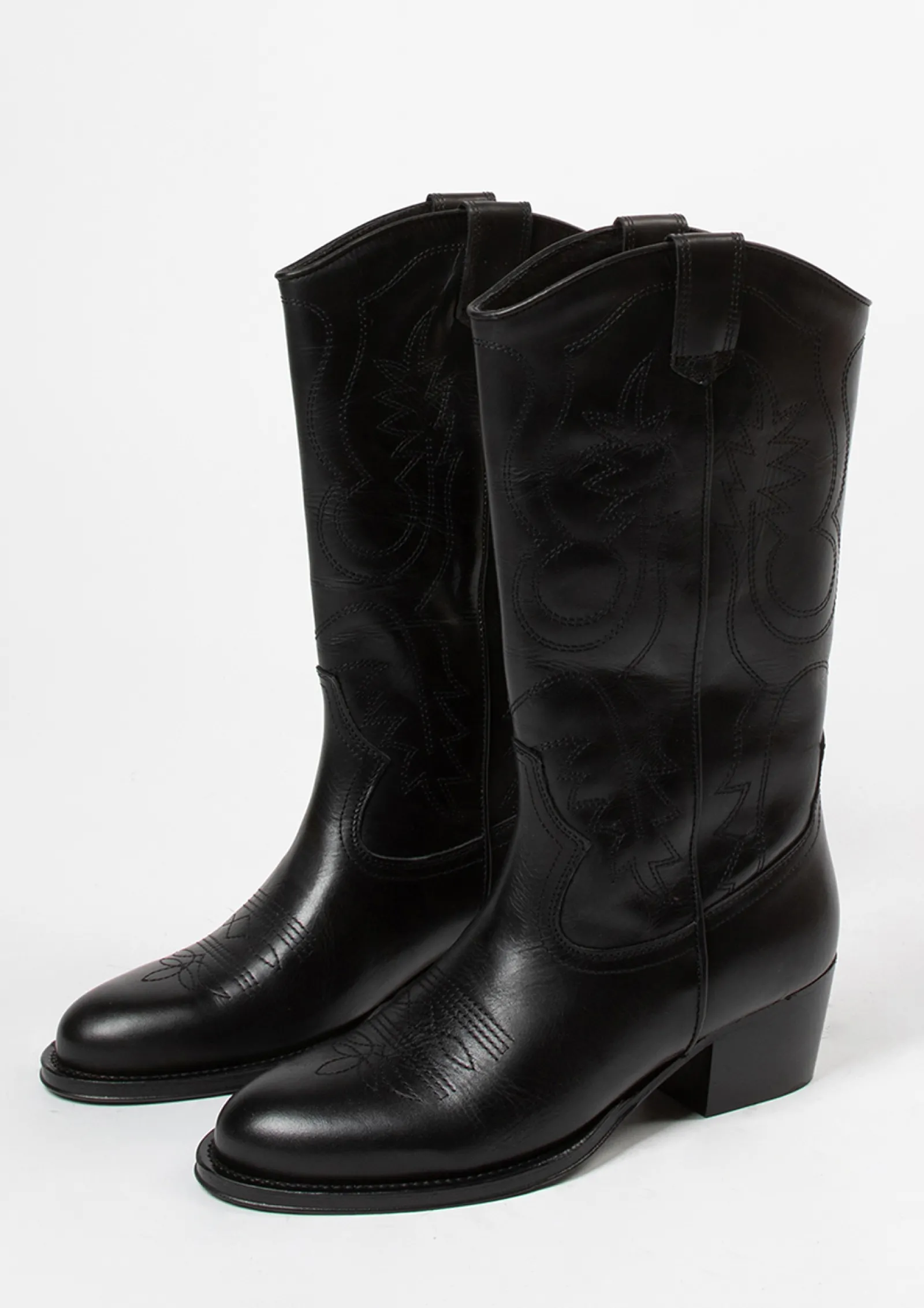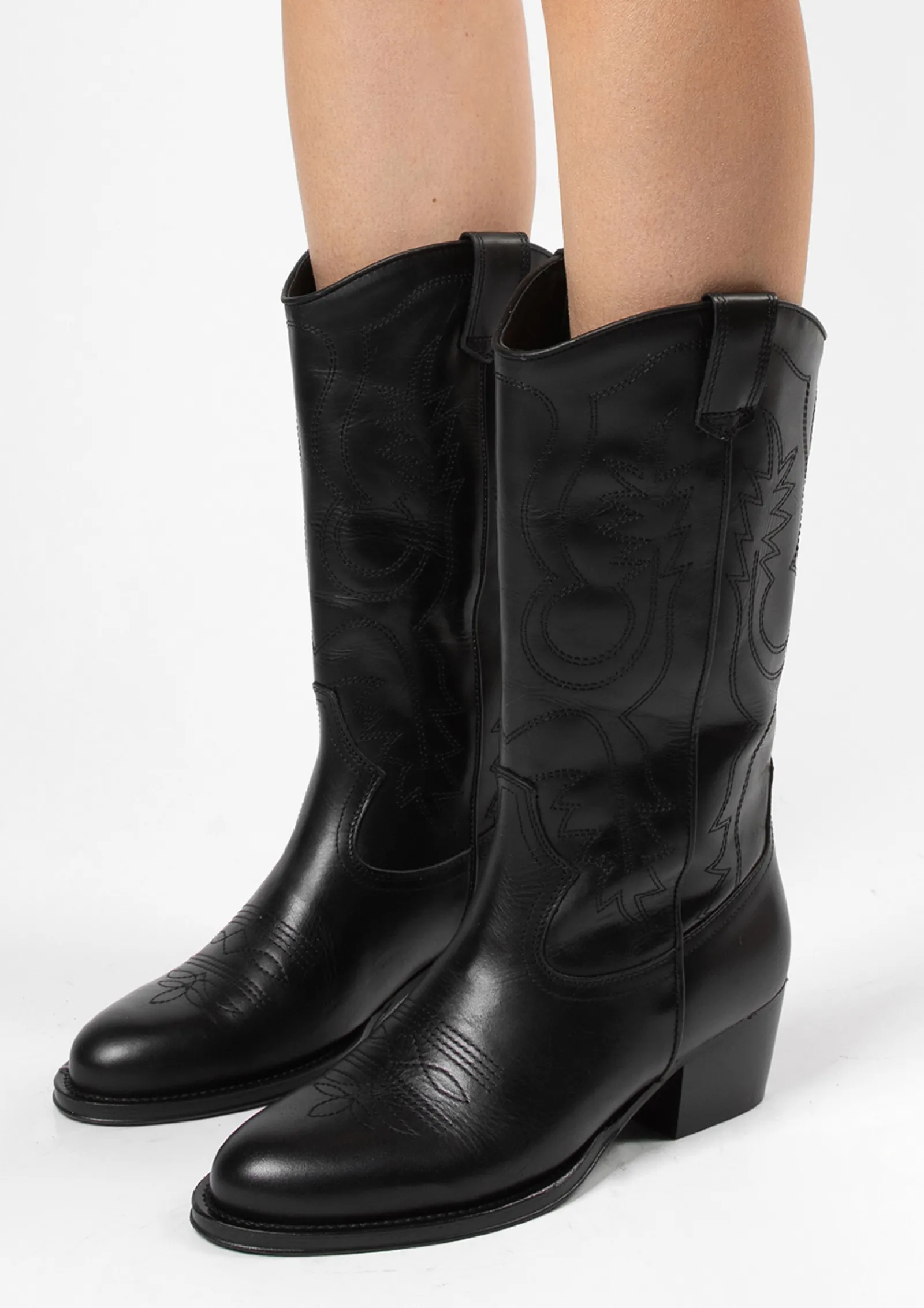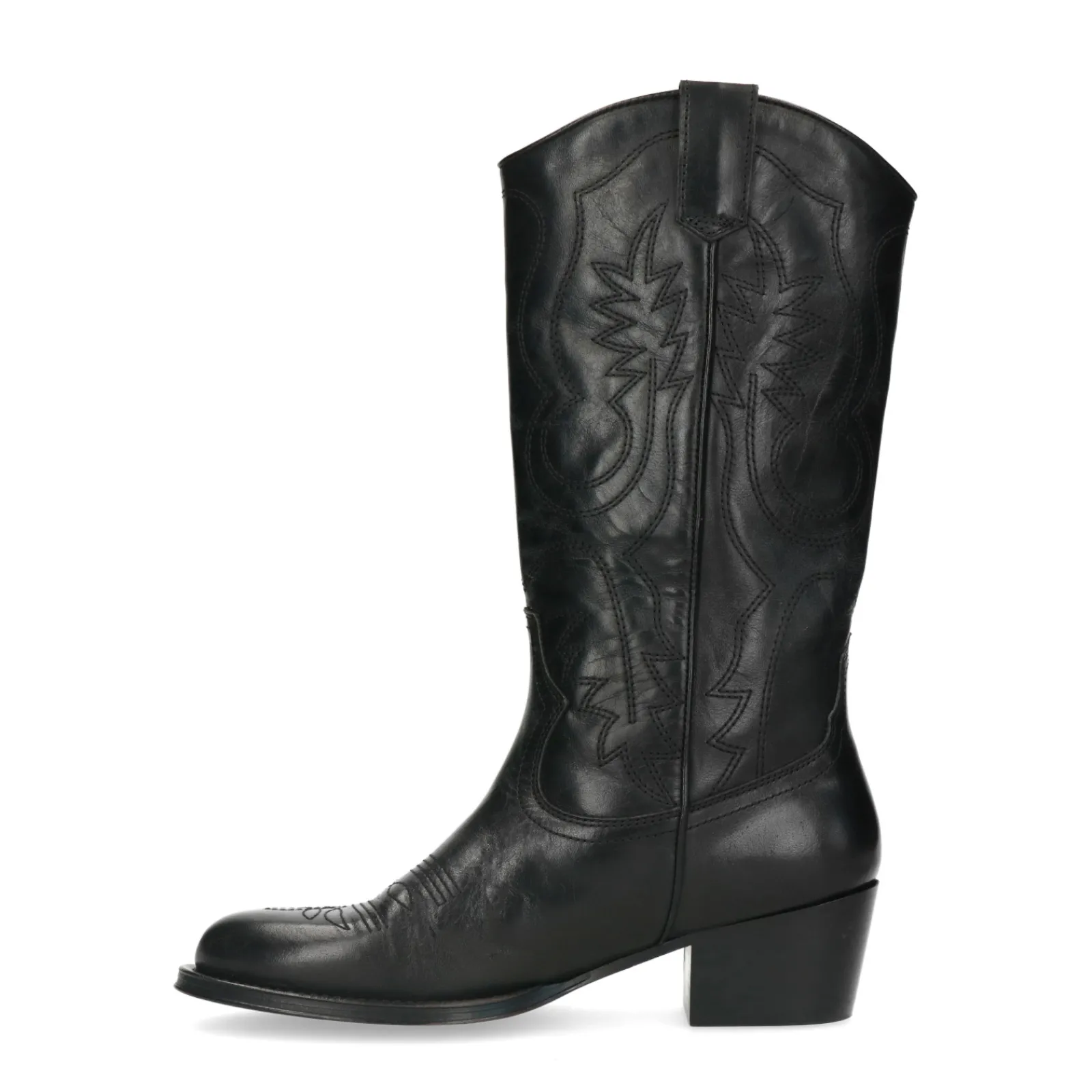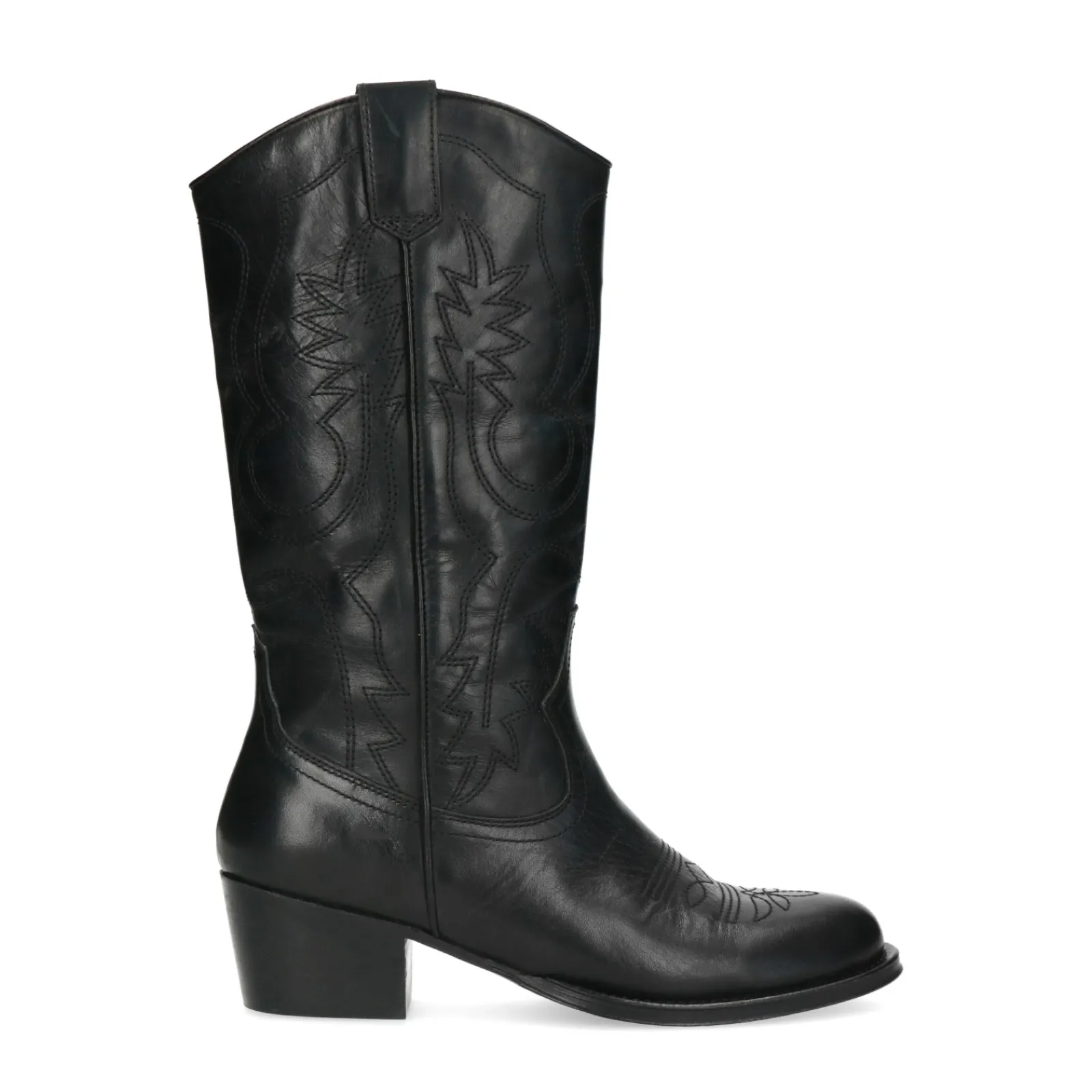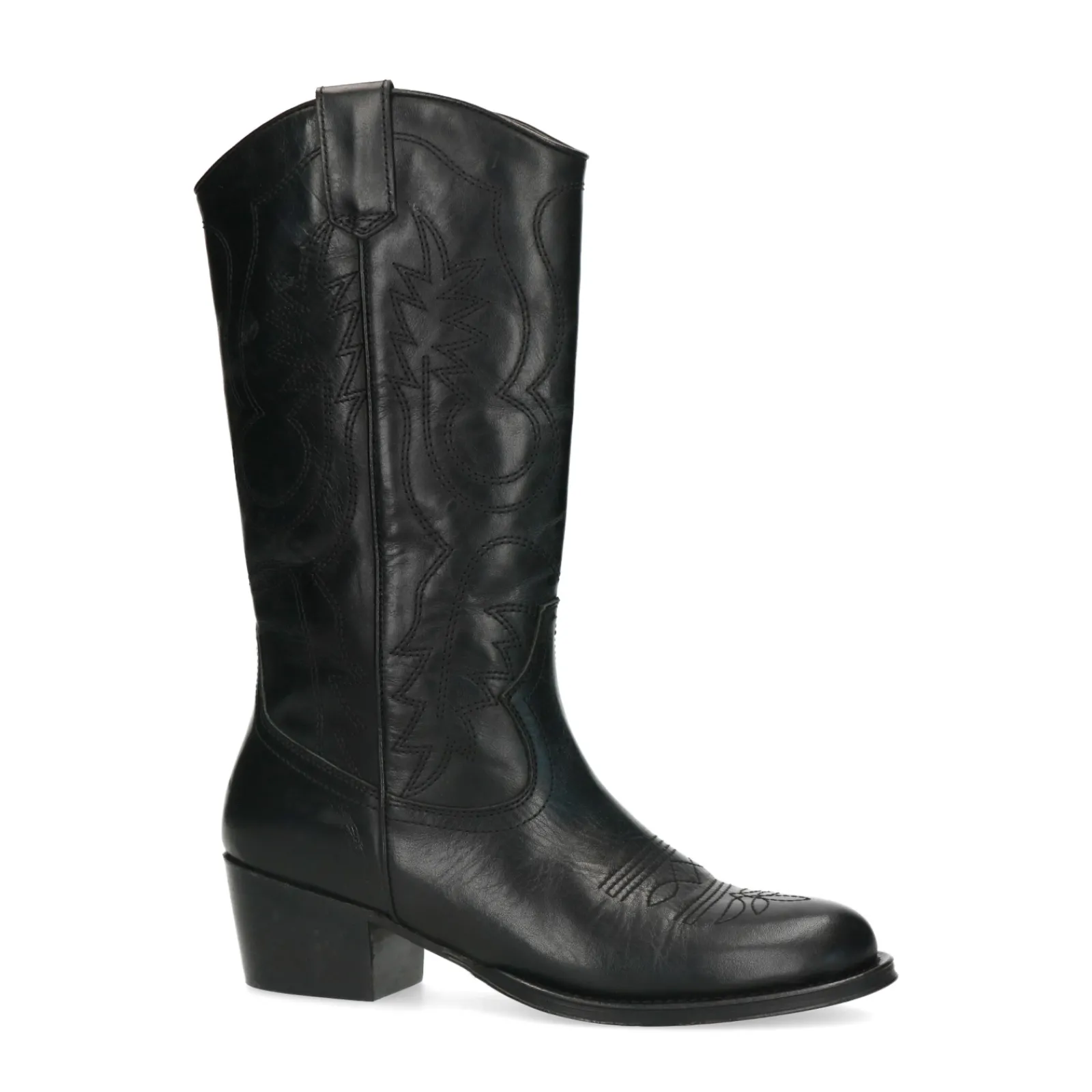 Zwarte Leren Cowboylaarzen Met Sierstiksels^Sacha Best