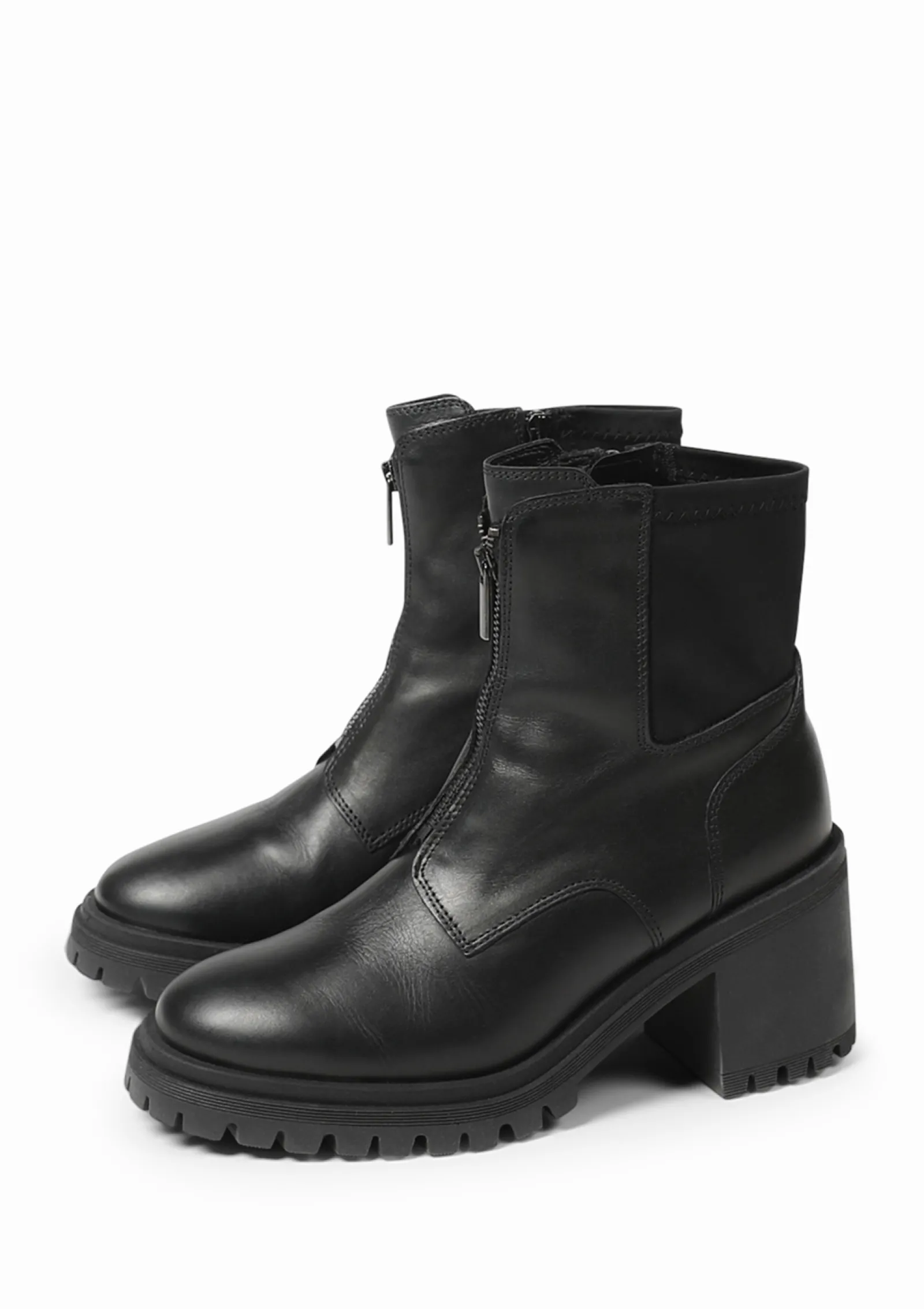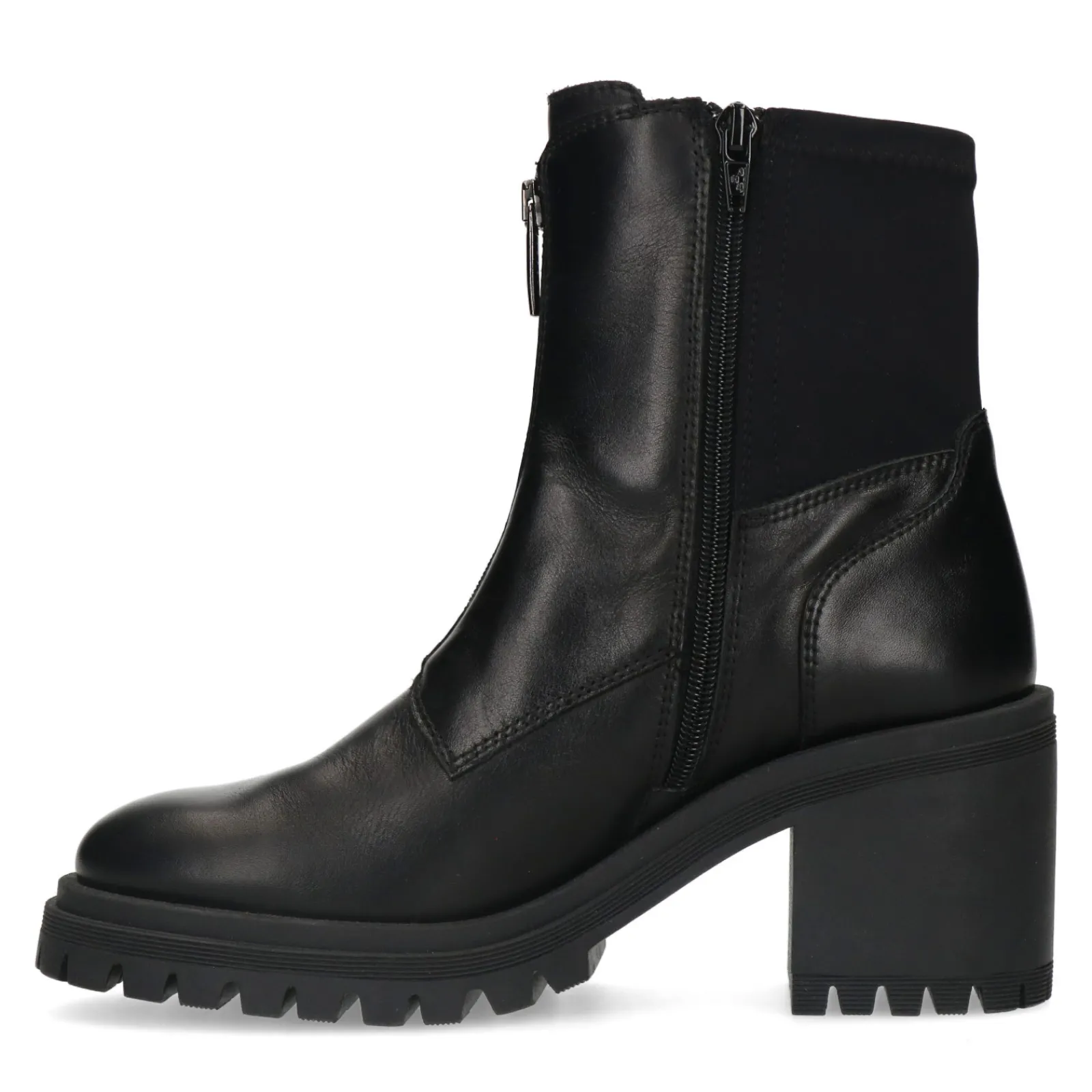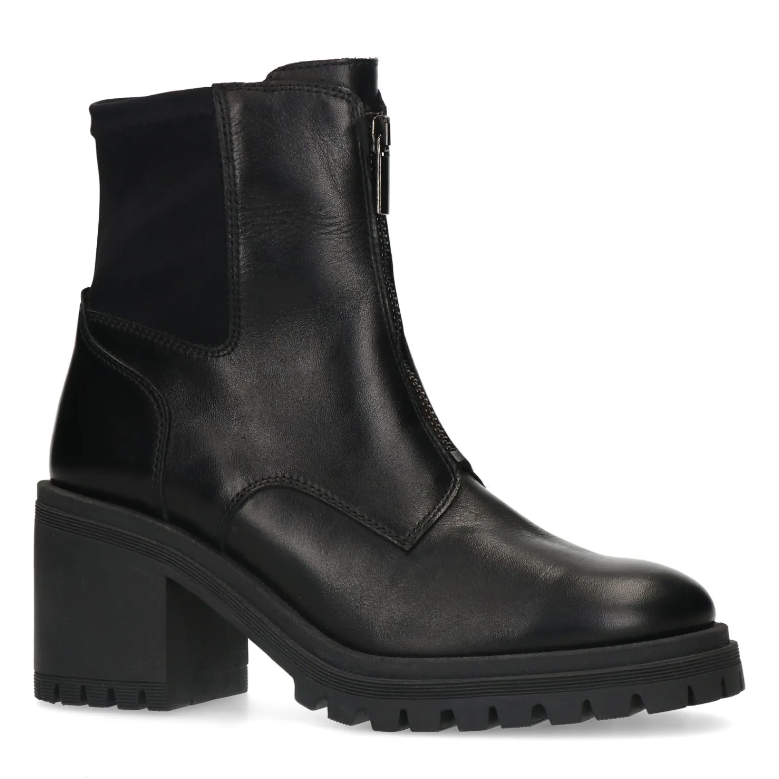 Zwarte Leren Enkellaarsjes Met Chunky Hak^Sacha Fashion