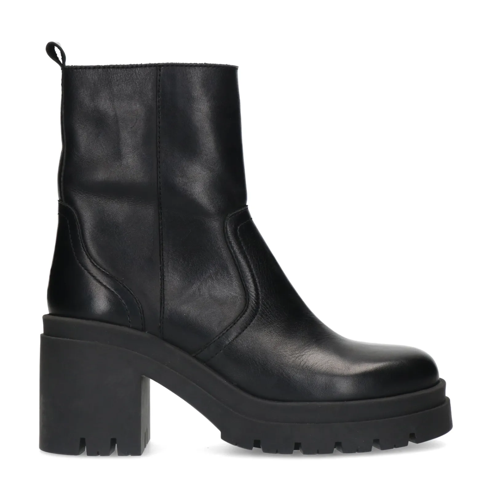 Zwarte Leren Enkellaarsjes Met Hak^Sacha Cheap