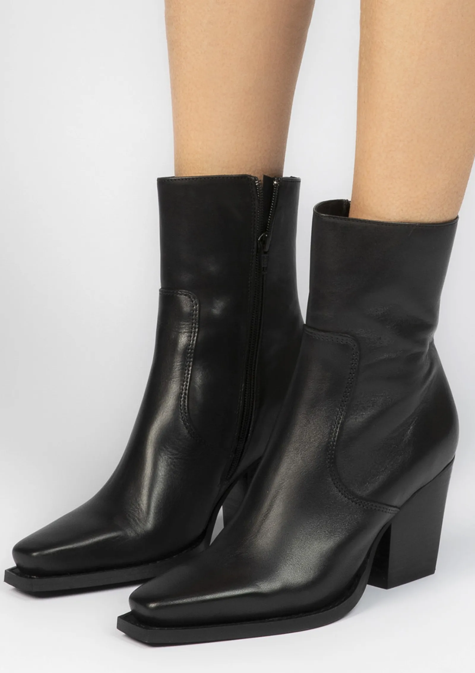 Zwarte Leren Enkellaarsjes Met Hak^Sacha Online