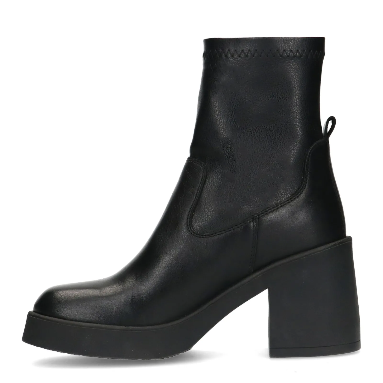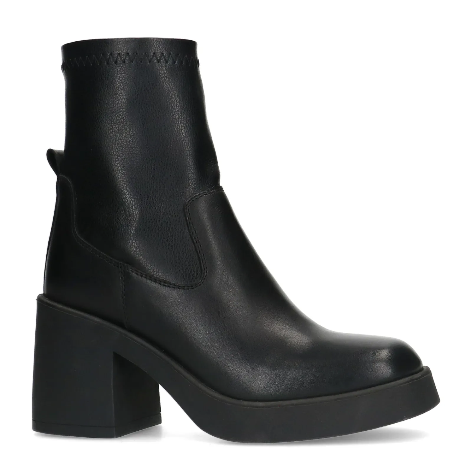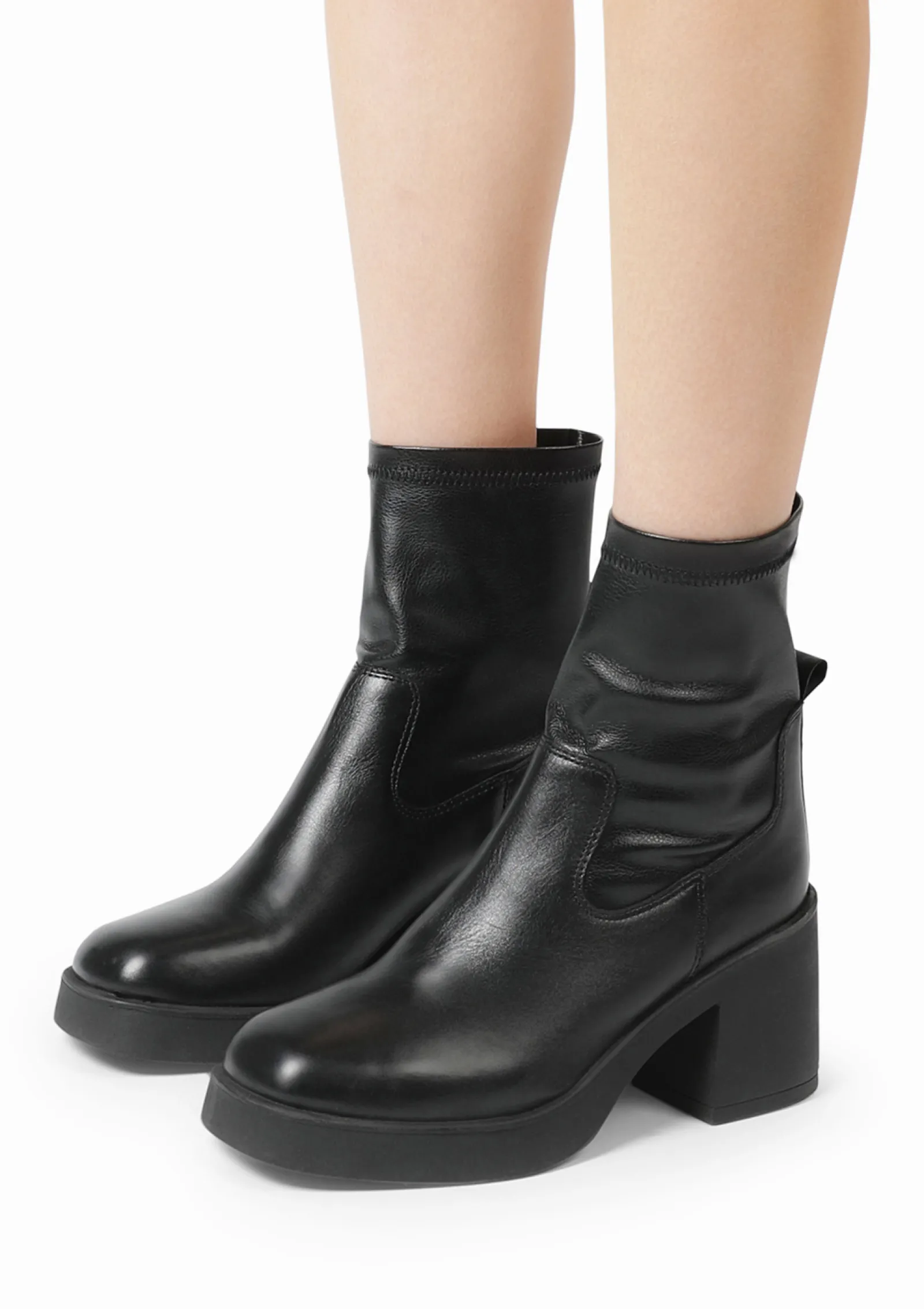 Zwarte Leren Enkellaarsjes Met Plateau Hak^Sacha Cheap