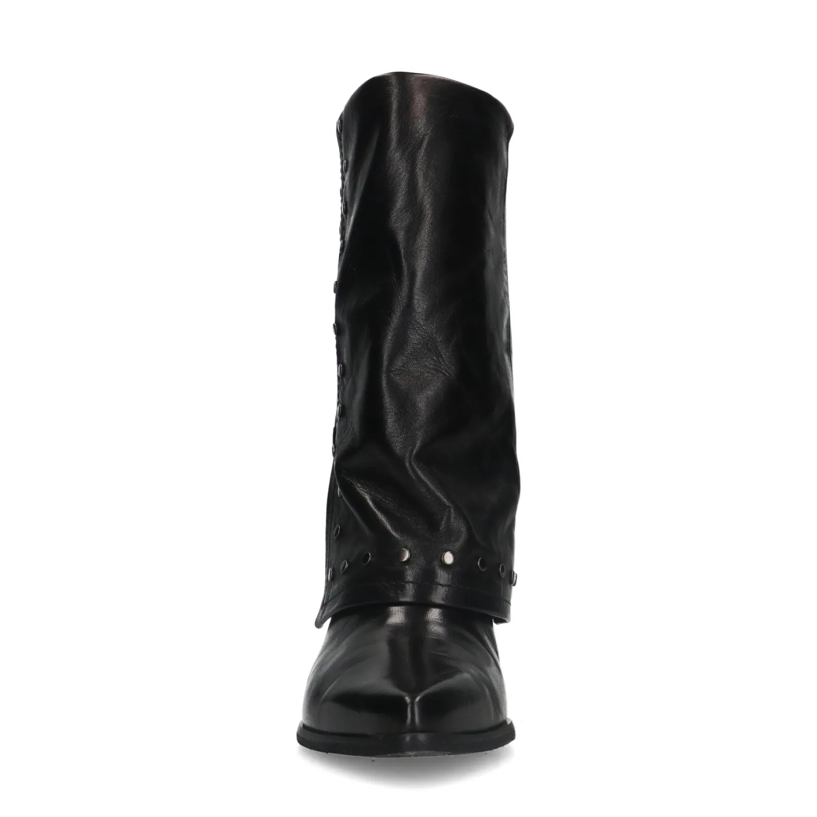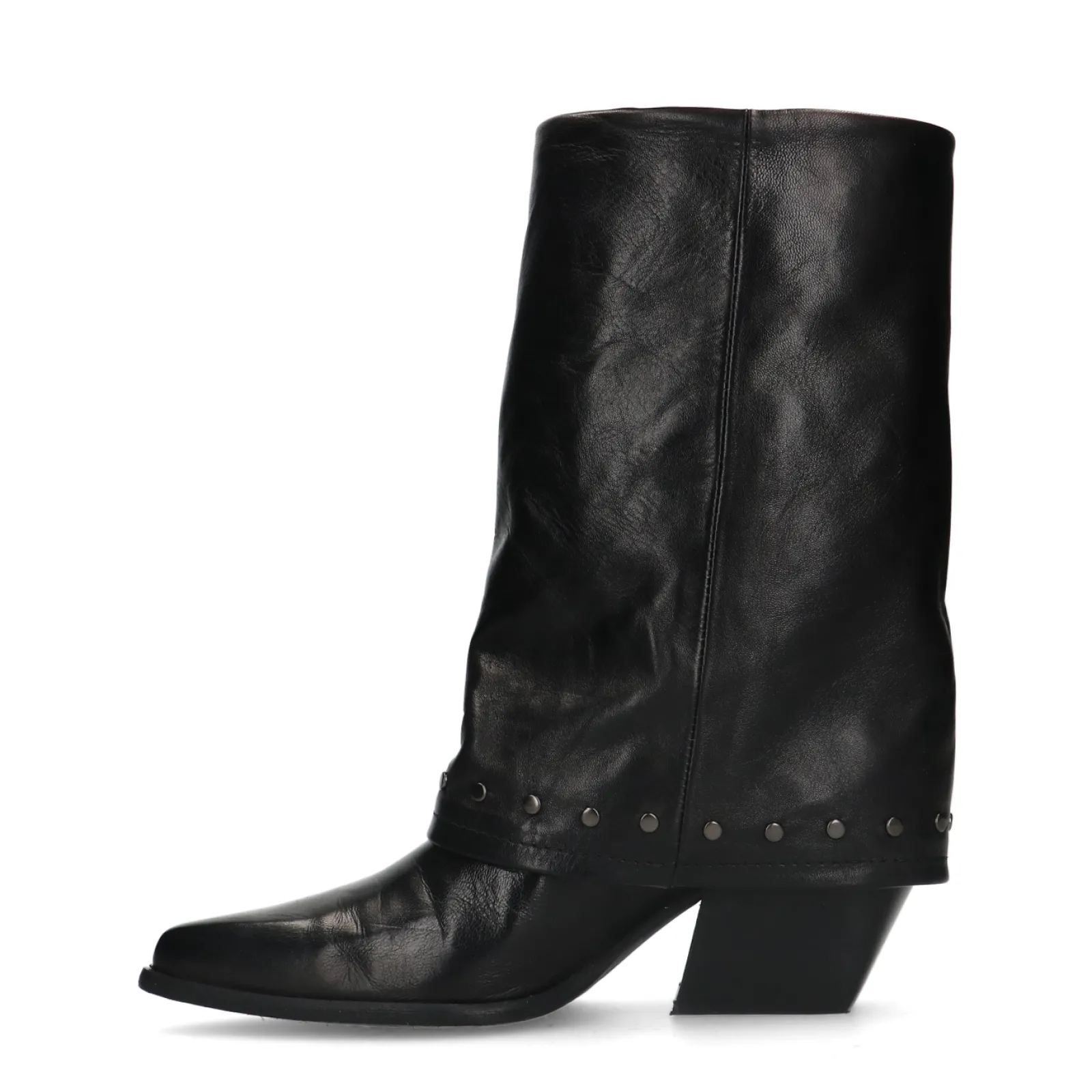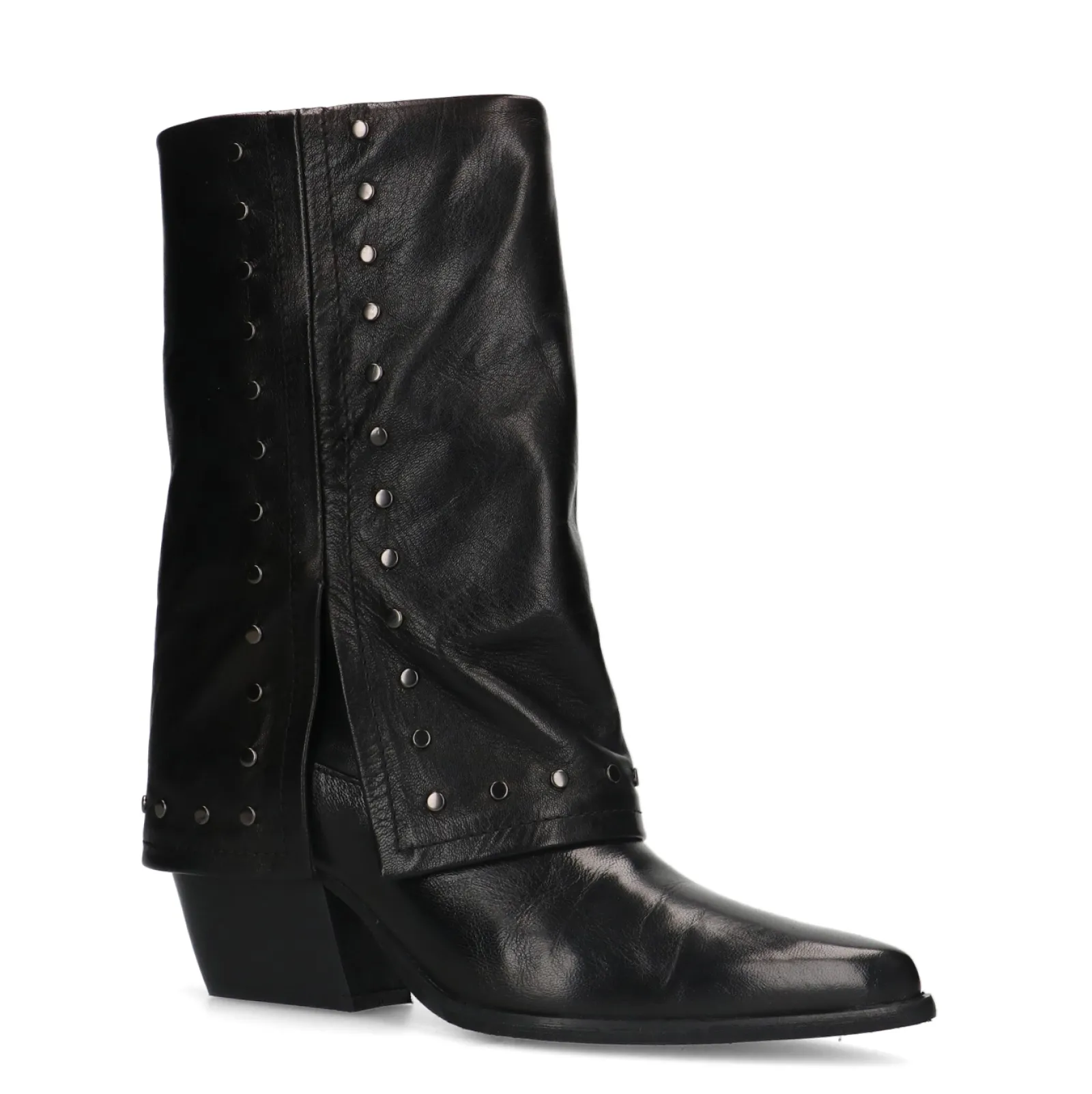 Voeg Deze Zwarte Statement Laarzen Van Sacha Toe Aan Je Laarzen Collectie! De Laarzen Hebben Een Gevouwen Detail Met Studs Voor Een Unieke Look. De Laarzen Hebben Een Puntige Neus En Een Hak Met Een Hoogte Van 7 Cm. De Schachthoogte Is 22 Cm En De Schachtomtrek Meet 35 Cm. De Binnen- En Buitenkant Van De Laarzen Zijn Gemaakt Van Leer. Maak Gebruik Van De Juiste Onderhoudsproducten!