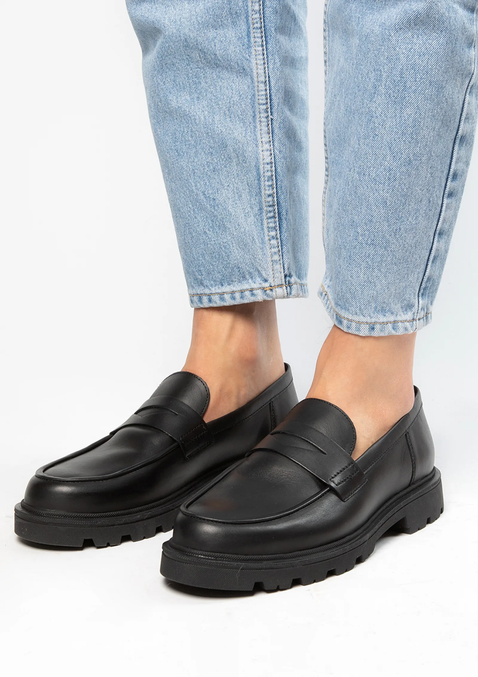 Zwarte Leren Loafers Met Grove Zool^Sacha Discount
