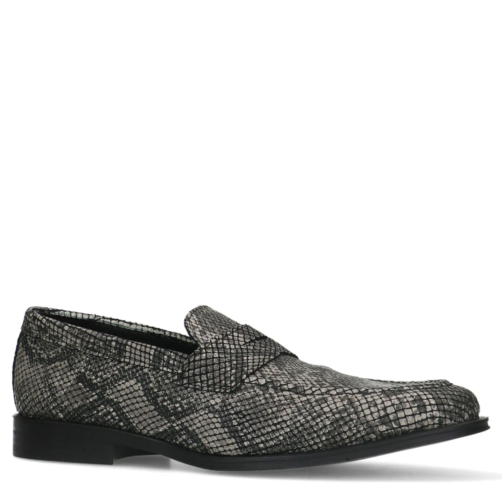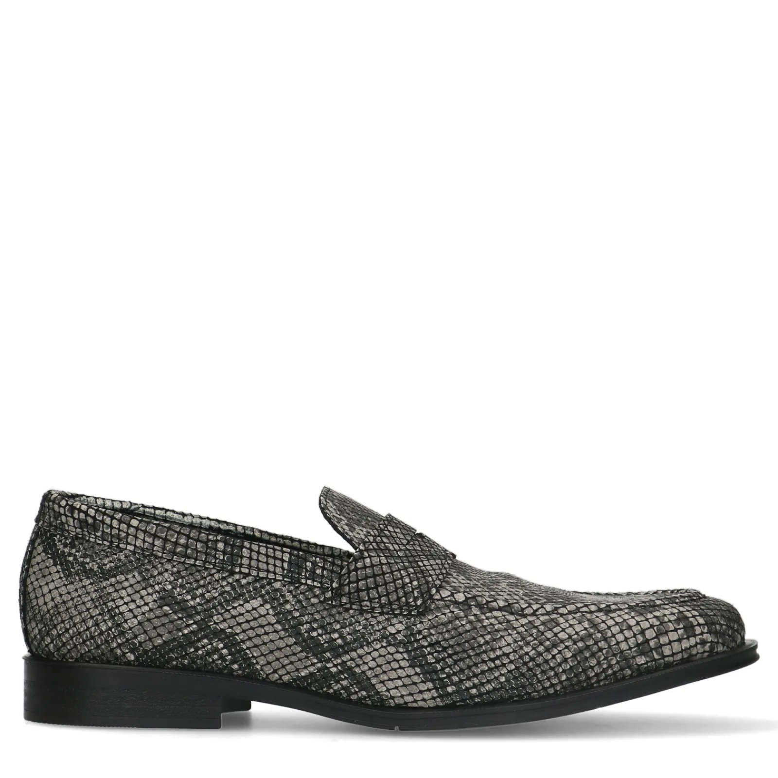 Een Uniek Model Loafer Door De Opvallende Grijze Pythonprint! Deze Penny Loafers Zijn Geheel Gemaakt Van Leer En Worden Gekenmerkt Door Het Bandje Voor Op De Wreef. De Loafers Hebben Een Zwarte Zool Met Een Minimale Hakhoogte Van 2 Cm. Maak Gebruik Van De Juiste Onderhoudsproducten.