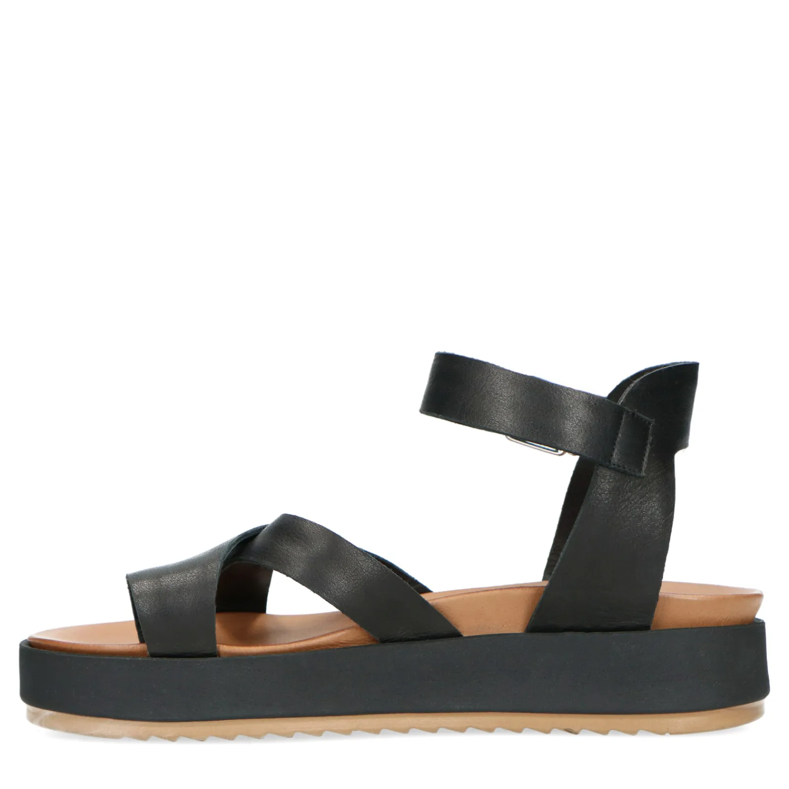 Zwarte Sandalen Uit De Women Essentials Collectie Van Sacha. De Slippers Zijn Volledig Gemaakt Van Leer, Wat Zorgt Voor Een Hoog Loopcomfort. De Sandalen Hebben Een Enkelbandje Met Een Zilverkleurige Gesp En Een Plateauzool Van 3 Cm Hoog. Combineer Dit Item Met Een Lichte Jeans Of Een Maxi Dress. Maak Gebruik Van De Juiste Onderhoudsproducten.