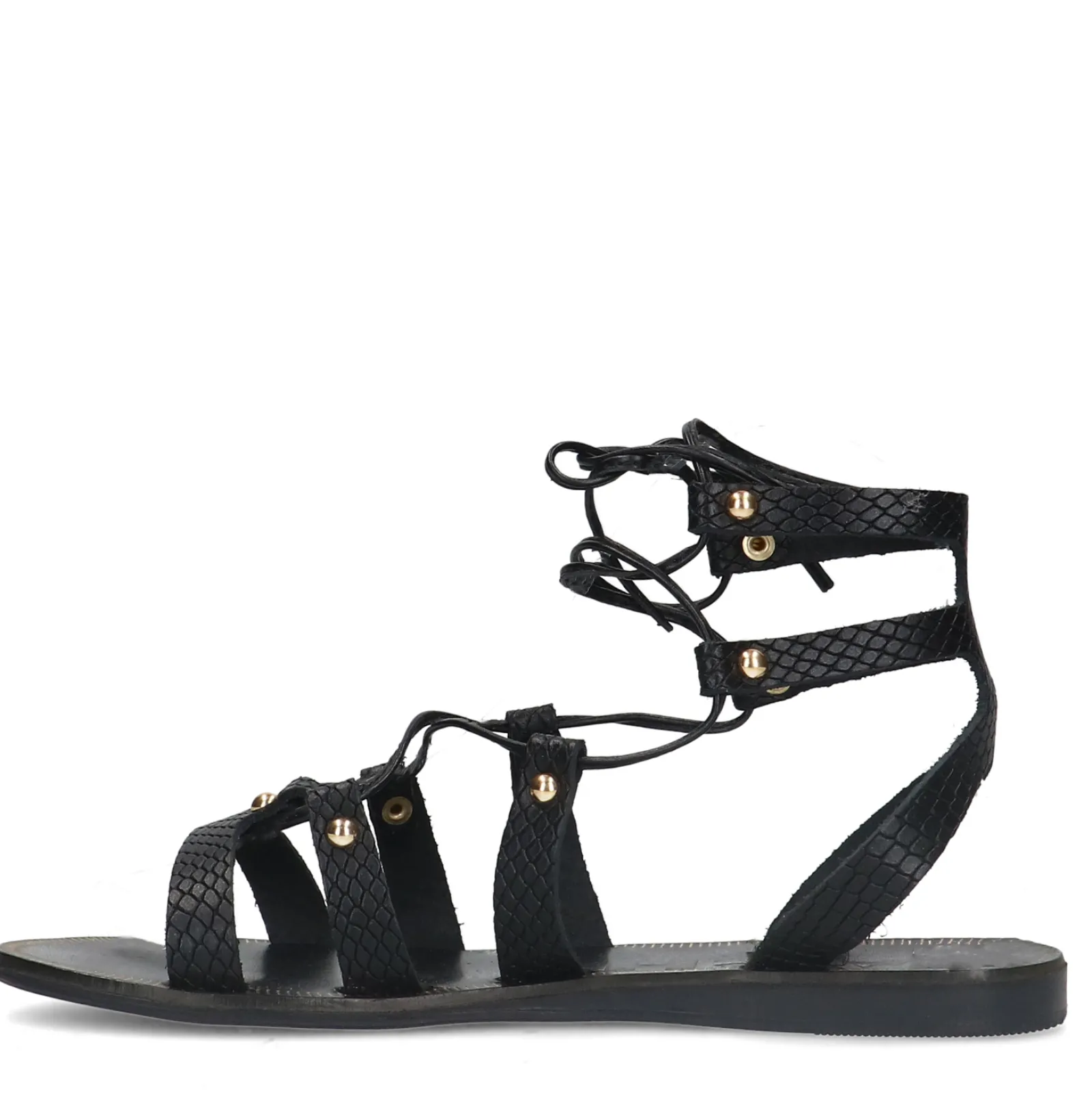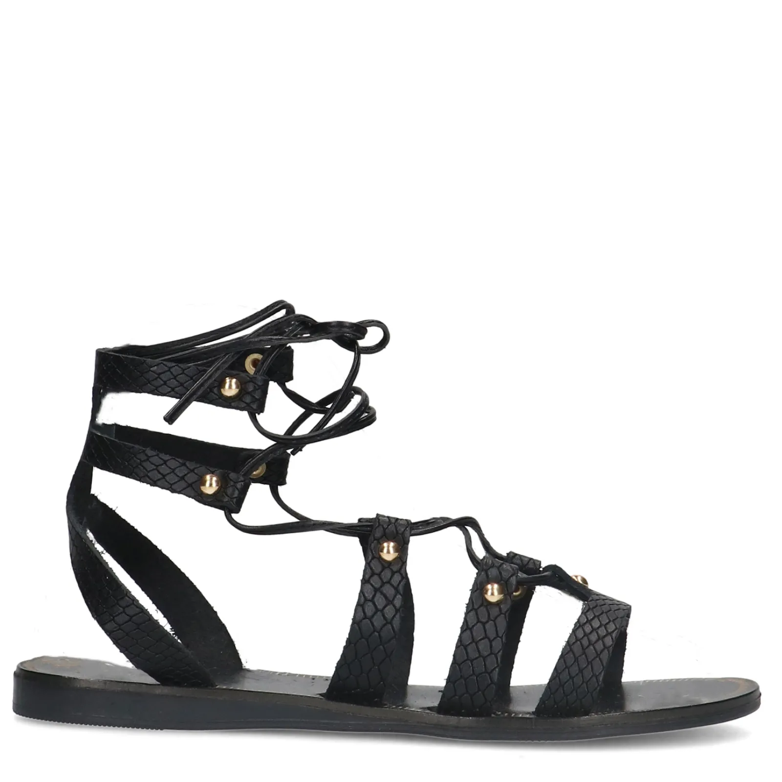 Deze Zwarte Sandalen Van Sacha Hebben Een Subtiele Crocoprint. De Schoenen Zijn Met Zwarte Veters Te Strikken En Hebben Aan De Achterkant Een Kleine Hakverhoging Van 1 Cm. De Sandalen Zijn Aan De Buitenkant Gemaakt Van Leer. Maak Gebruik Van De Juiste Onderhoudsproducten!