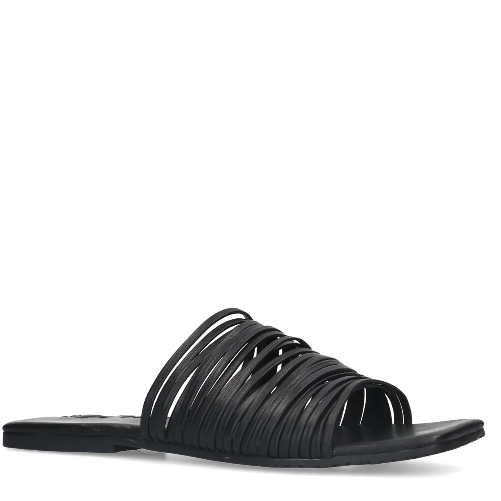 Zomerse Basics: Deze Zwarte Leren Slippers Van Sacha! De Slippers Hebben Een Opvallend Detail Door De Meerdere Dunne Bandjes Over De Voet Wat Zorgt Voor Een Unieke Look. De Slippers Zijn Geheel Gemaakt Van Leer En Hebben Een Platte Hak Van 1 Cm. Maak Gebruik Van De Juiste Onderhoudsproducten.