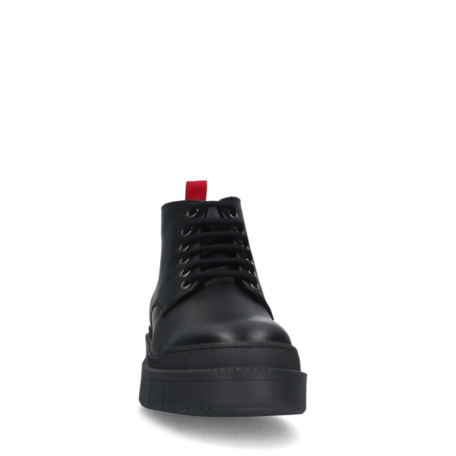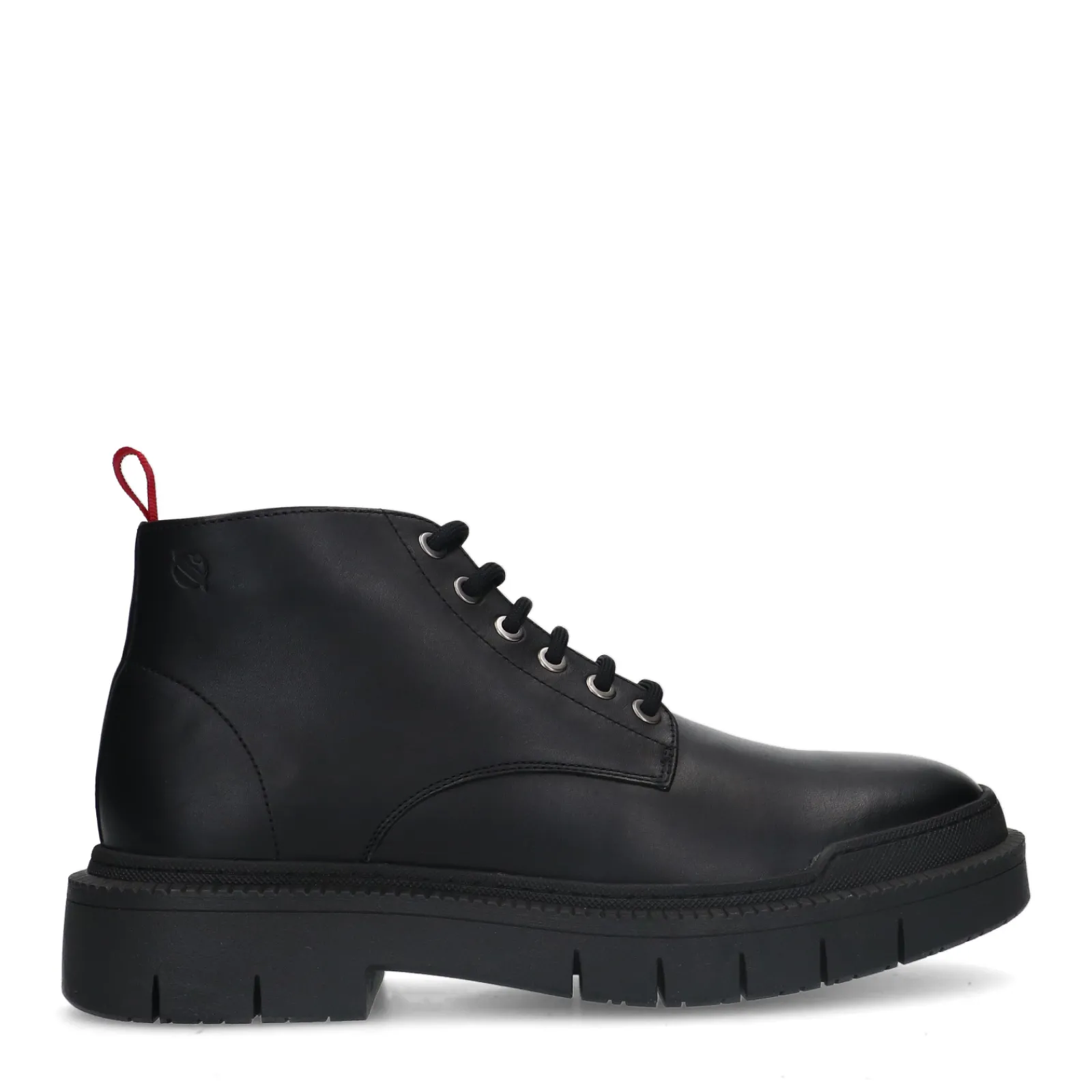 Zwarte Veterboots Van Sacha Met Een Rood Label Aan De Achterzijde Van De Laars. De Heren Boots Zijn Aan De Buitenzijde Gemaakt Van Leer En Aan De Binnenzijde Van Textiel. De Enkelboots Hebben Een Tijdloos En Simpel Design Met 6 Veterogen Aan Iedere Zijde. Maak Gebruik Van De Juiste Onderhoudsproducten.