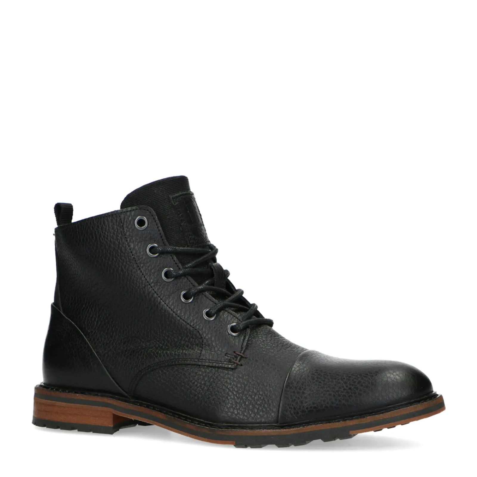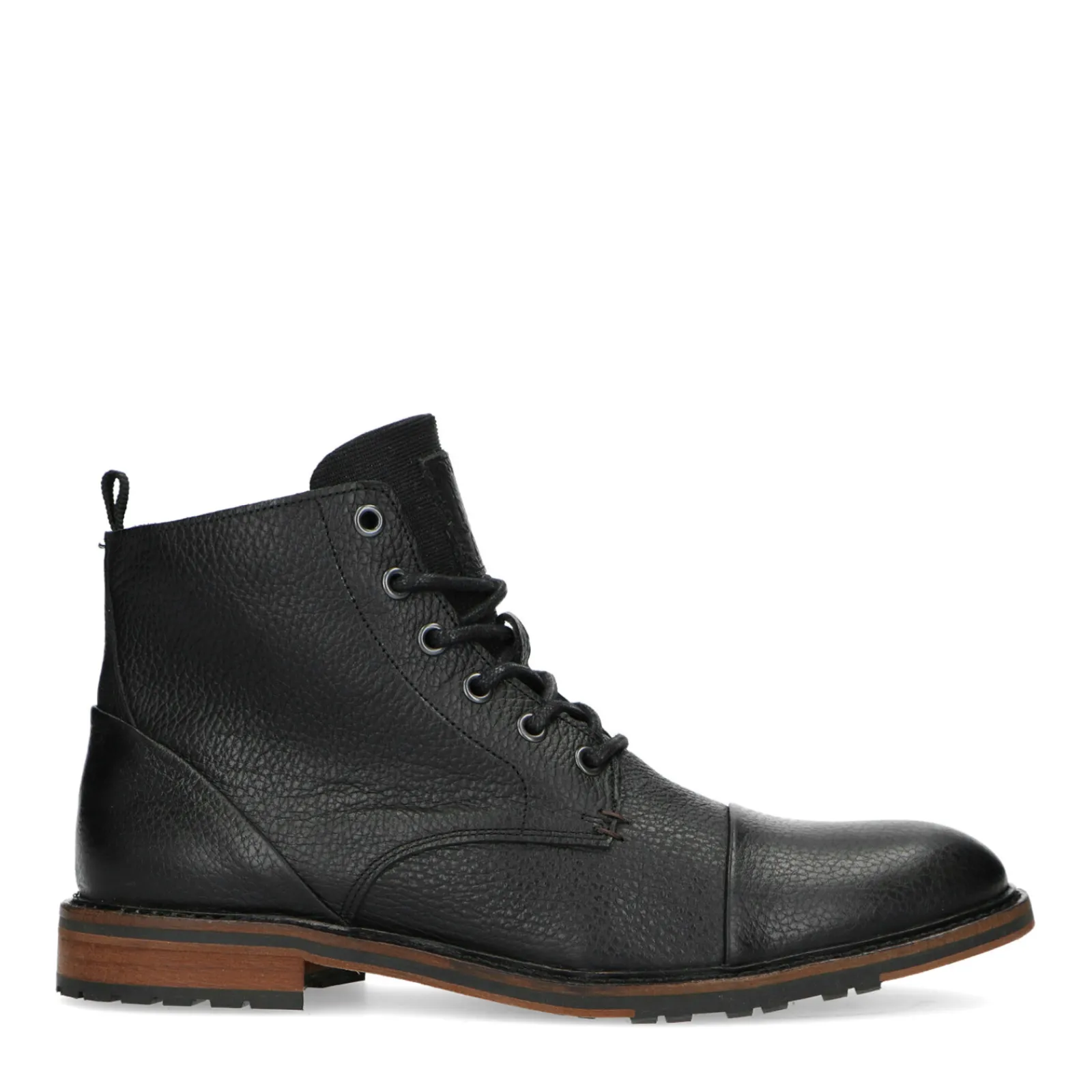 Zwarte Leren Veterboots Uit De Men Casual Collection. De Boots Zijn Aan De Buitenkant Gemaakt Van Leer En Bestaan Aan De Binnenkant Uit Synthetisch Materiaal. De Boots Hebben Veters Op De Voorkant, Maar Door De Rits Aan De Binnenkant Stap Je Extra Makkelijk In En Uit Je Schoenen.In De Zool Zit Een Bruin Detail Wat Zorgt Voor Een Speels Effect. Verzorg Je Schoenen Met De Juiste Onderhoudsproducten, Zoals De Color Boost Black.