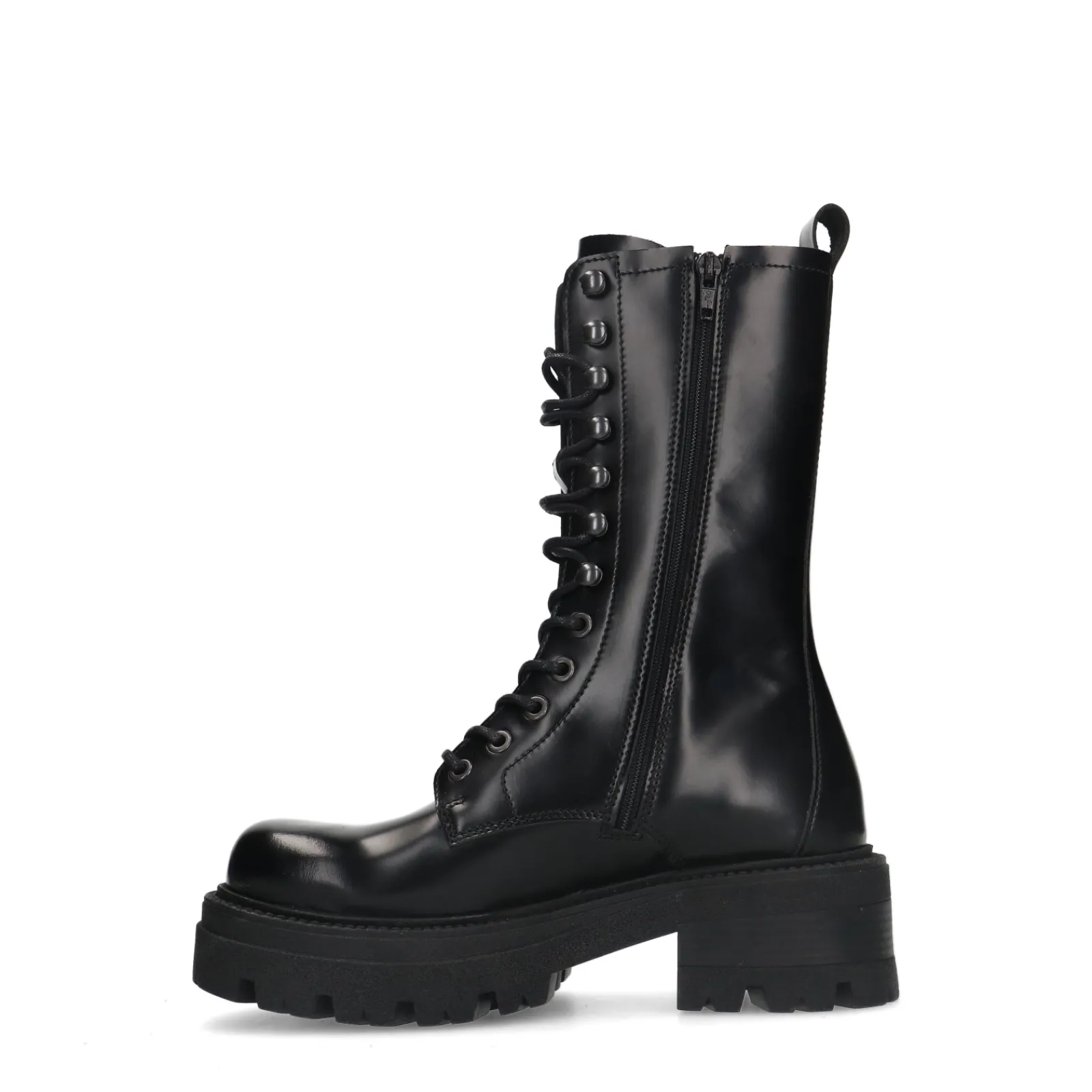 Deze Zwarte Leren Veterlaarsjes Van Sacha Hebben Chunky Edgy Details. De Veterboots Hebben Een Carre Neus, Een Chunky Zool Van 4 Cm Dik En Een Subtiele Plateau Hak Van 6 Cm Hoog. De Veterlaarzen Hebben 12 Veterogen En Sluiten Middels Een Rits Aan De Binnenzijde En Zwarte Veters Om De Boots Te Verstellen. De Schachthoogte Meet 24 Cm En De Schachtomtrek 27 Cm. Maak Gebruik Van De Juiste Onderhoudsproducten Om De Veter Boots Te Verzorgen!