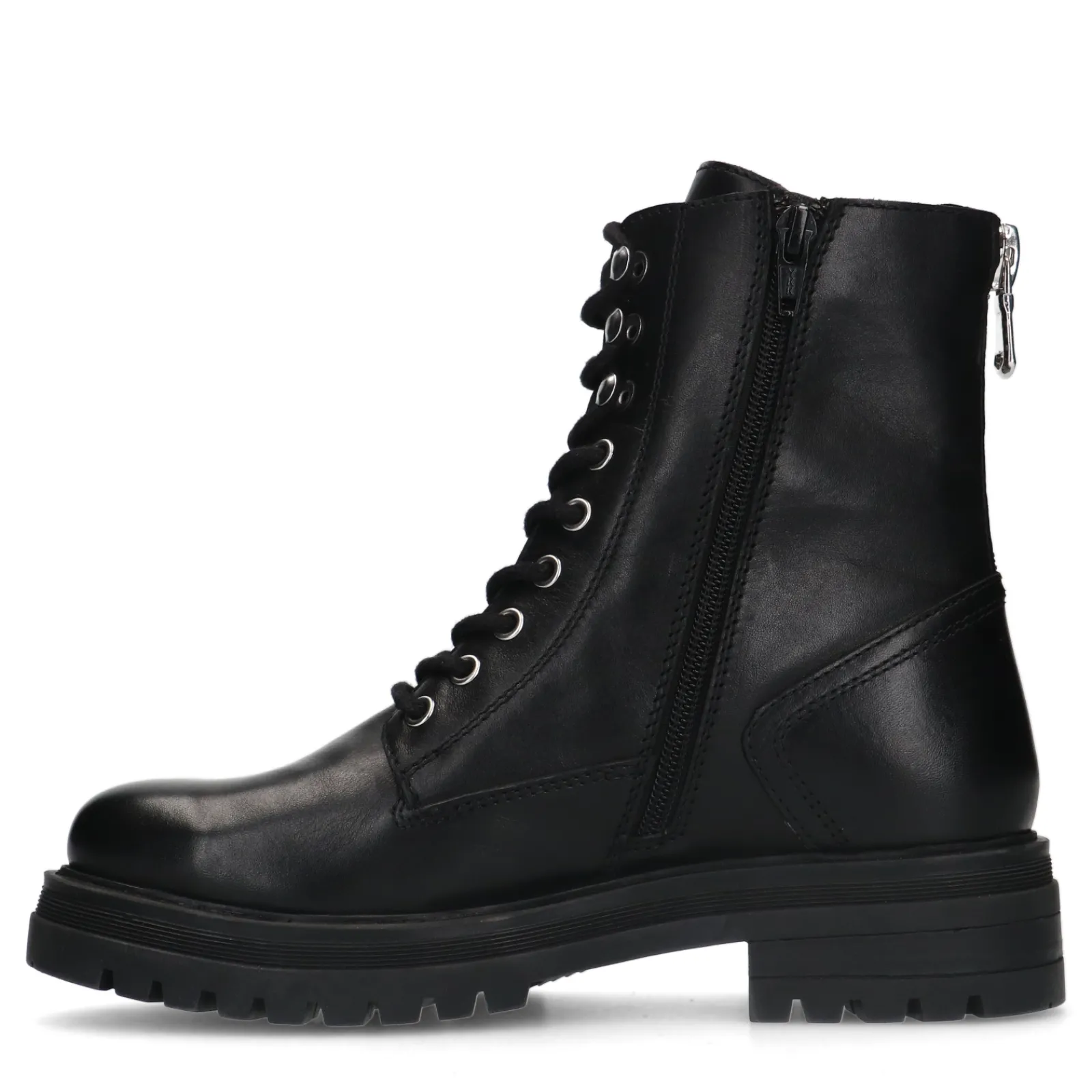 We Love Biker Boots! De Zwarte Enkellaarsjes Van Sacha Hebben Veters En Een Opvallend Zilverkleurig Ritsdetail Aan De Achterzijde Van De Laars. Deze Veterlaarsjes Van Sacha Zijn Aan De Buitenzijde Gemaakt Van Leer En Aan De Binnenzijde Van Textiel. De Hak Heeft Een Hoogte Van 4 Cm En De Zool Heeft Een Hoogte Van 2 Cm. Maak Gebruik Van De Juiste Onderhoudsproducten Om De Enkellaarsjes Te Verzorgen!