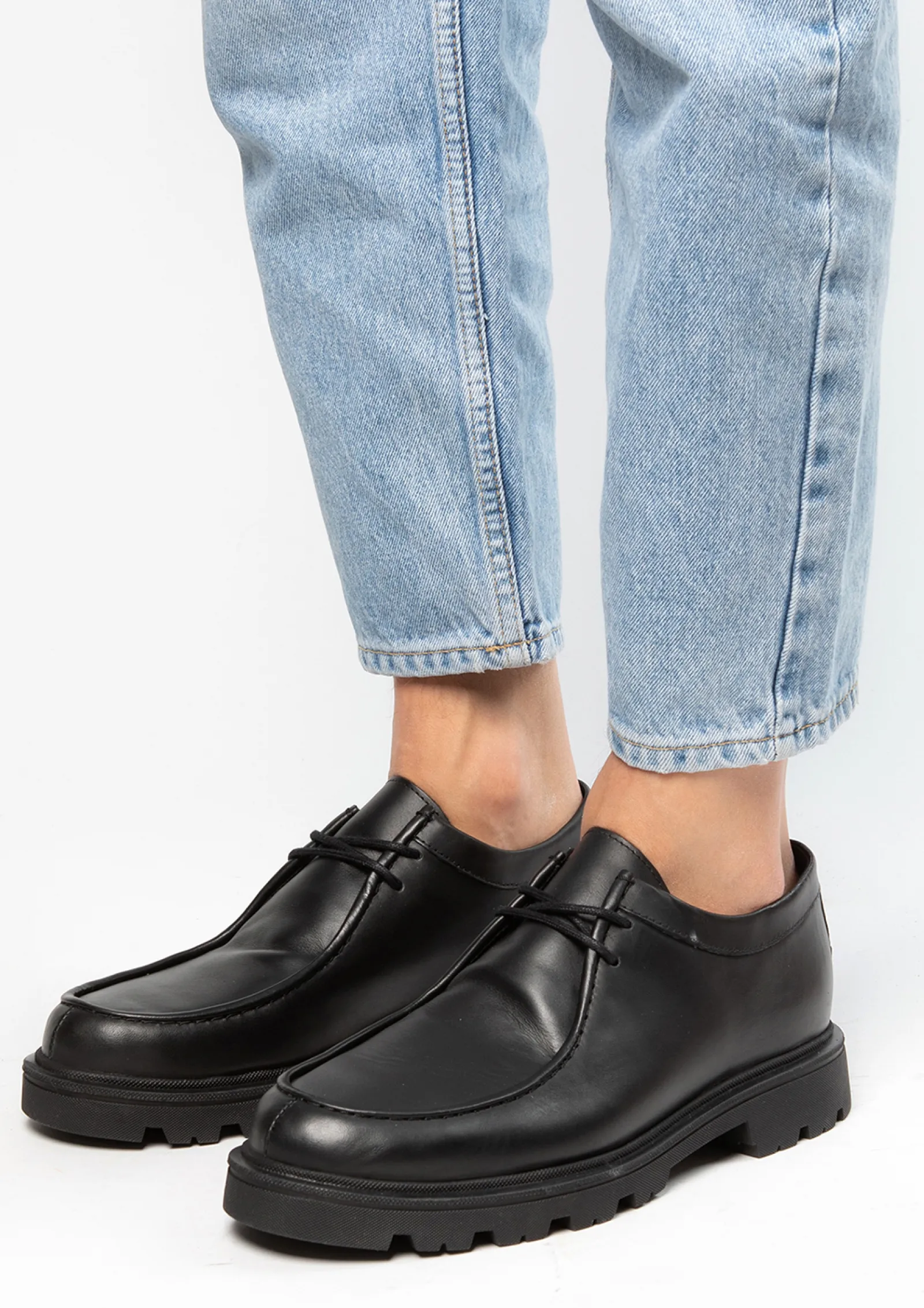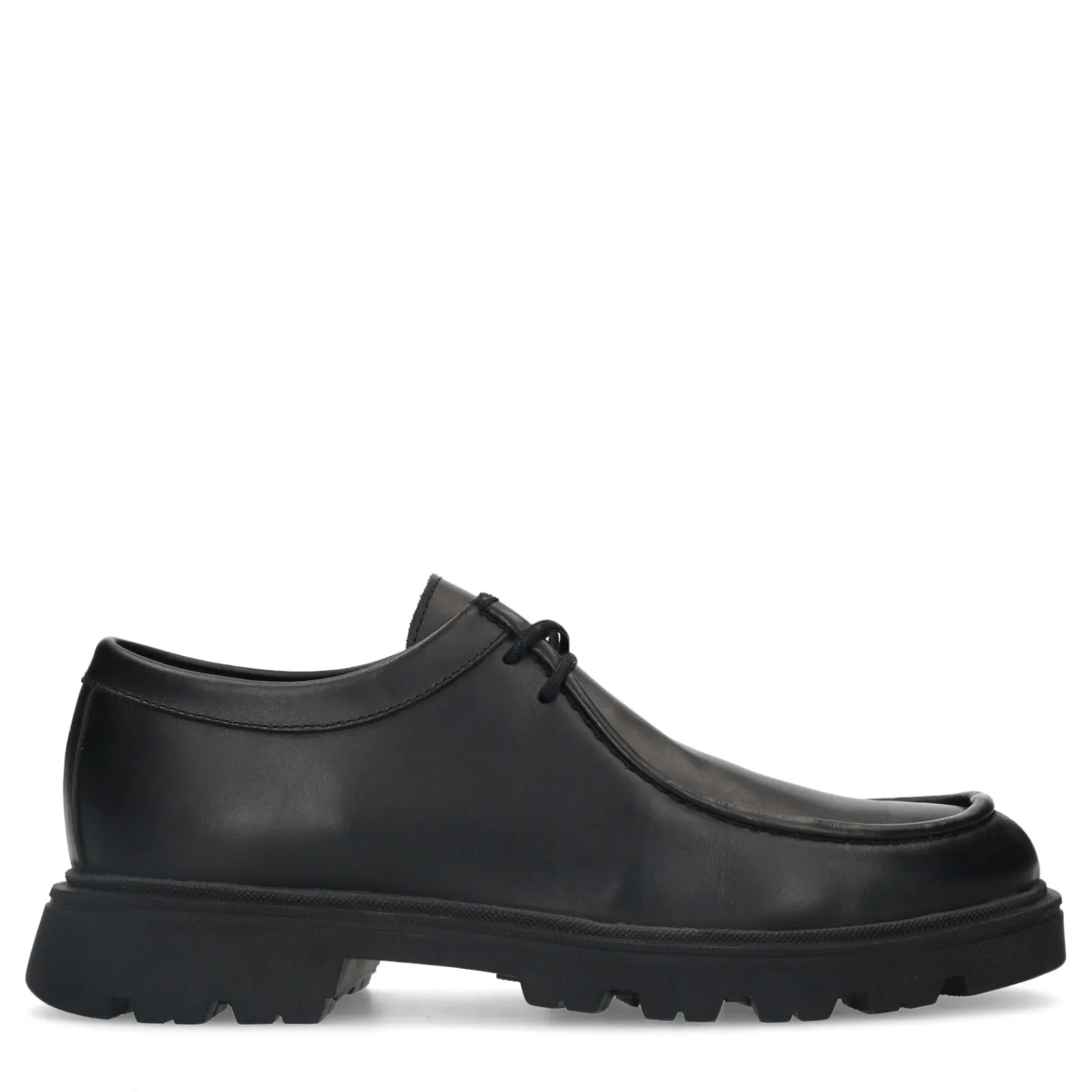 Zwarte Leren Veterschoenen Met Grove Zool^Sacha Flash Sale