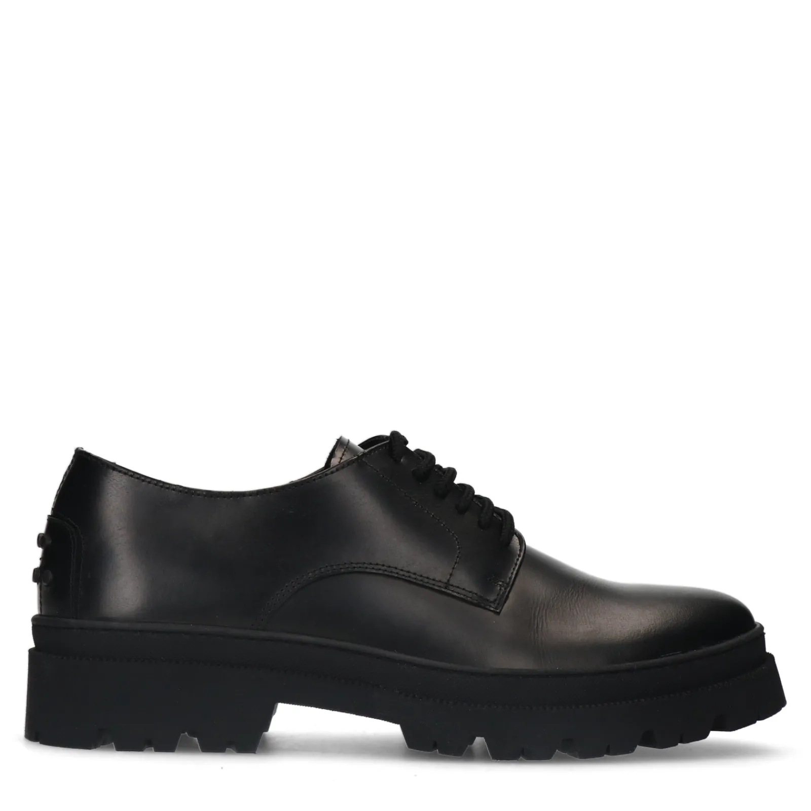 Zwarte Leren Veterschoenen Met Grove Zool^Sacha Store