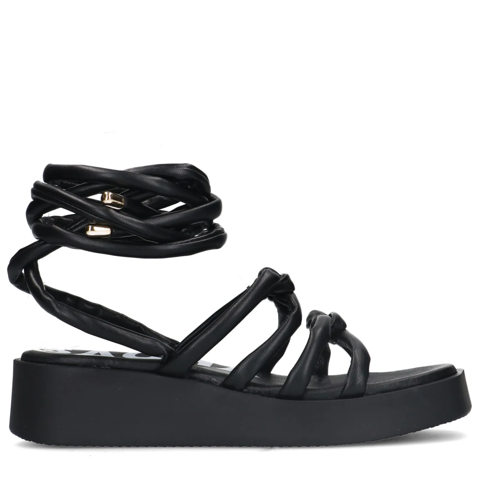 Deze Zwarte Sandalen Van Sacha Hebben Twee Unieke Eigenschappen: Een Edgy Zwarte Plateau Zool En Lange Strikveters! De Sandalen Hebben Een Zooldikte Van 2 Cm En Een Lichte Verhoging In De Hak Van 4 Cm. De Puffy Strikveters Met Goudkleurige Details Aan Het Uiteinde Zijn Zowel Om De Enkel Te Strikken, Als Om Jouw Onderbeen. Maak Gebruik Van De Juiste Onderhoudsproducten!