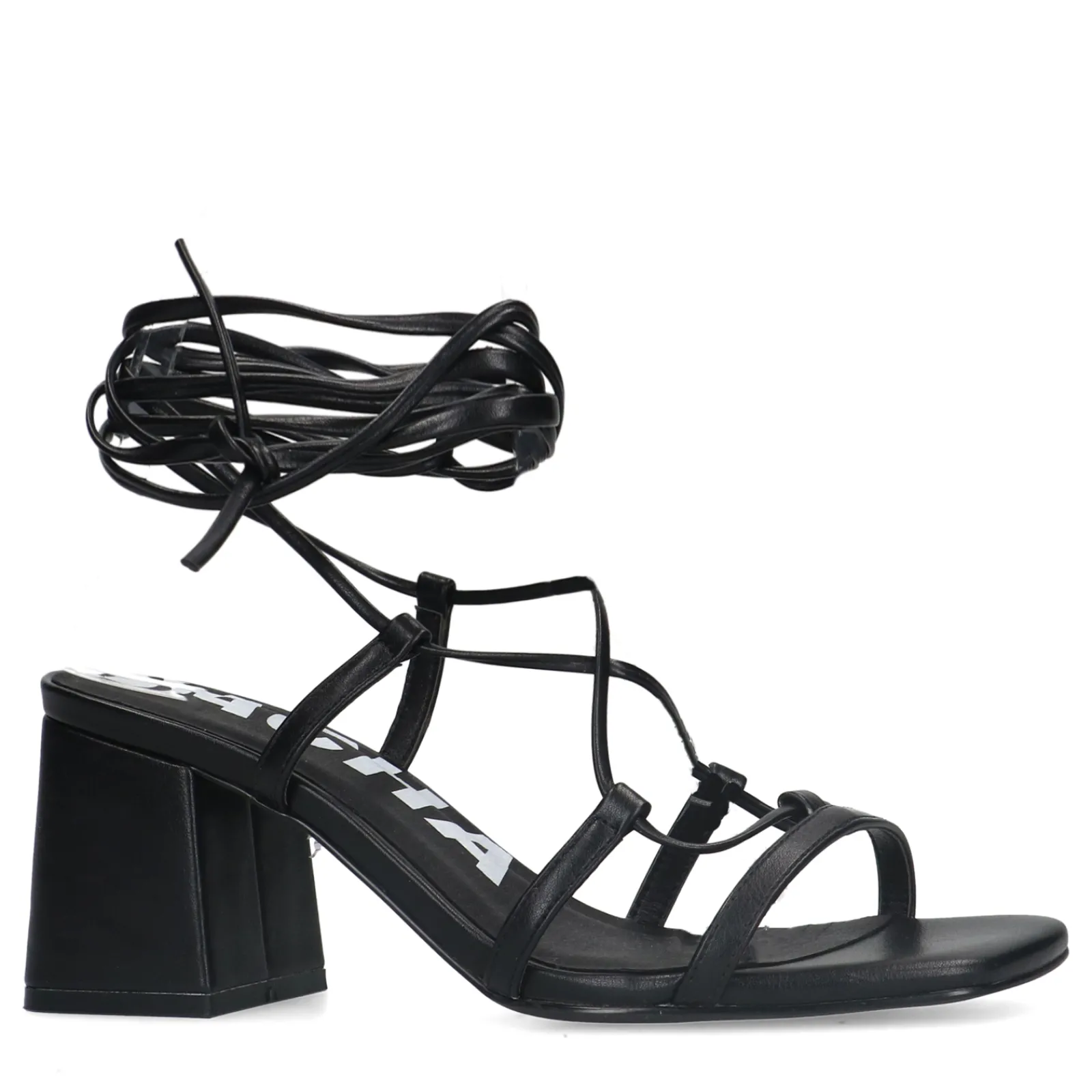 Zwarte Sandalen Met Hak En Strikveters^Sacha Discount
