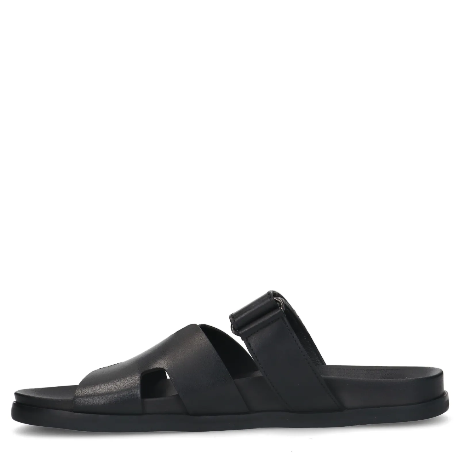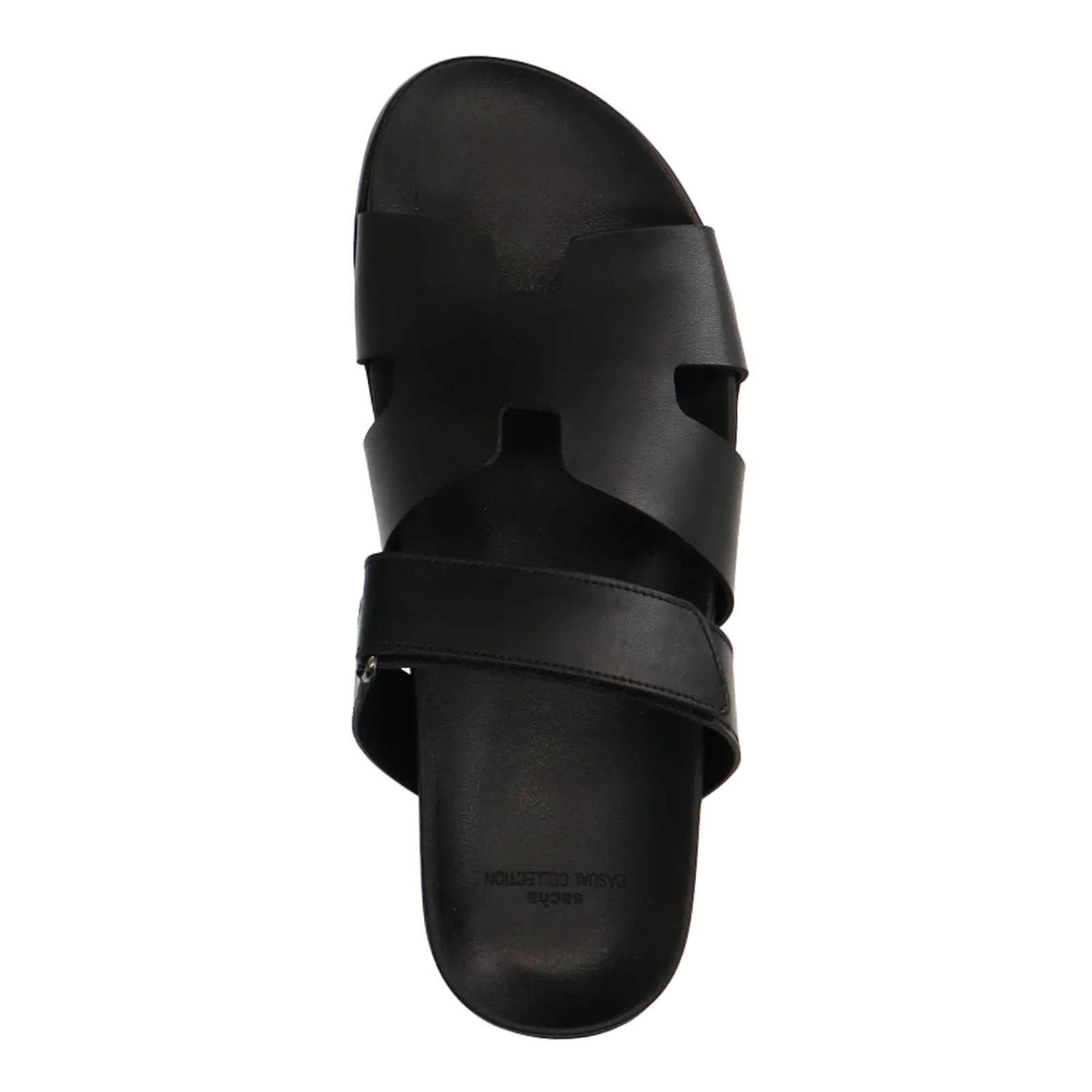 Deze Comfortabele Zwarte Sandalen Van Sacha Zijn Het Perfecte Item Voor De Warmere Dagen. De Slippers Hebben Een Brede Zwarte Band Over De Voet Gecombineerd Met Een Extra Band Met Klittenband. De Buitenzijde Van De Slippers Is Gemaakt Van Rubber En De Binnenzijde Van Synthetisch Materiaal. Maak Gebruik Van De Juiste Onderhoudsproducten Voor Extra Lang Draag Plezier.