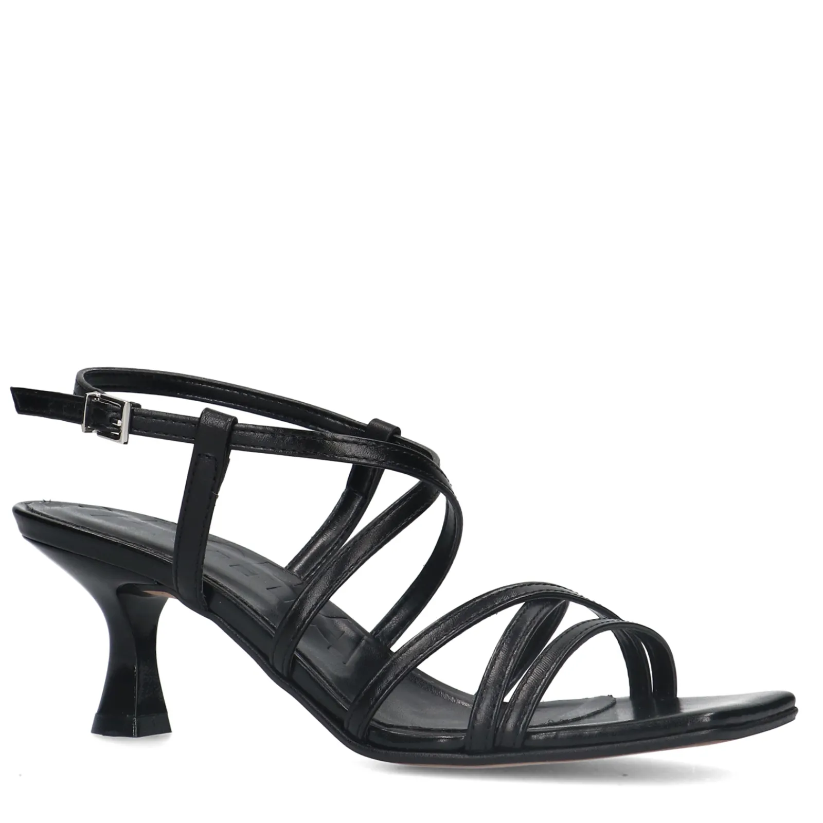 Deze Zwarte Sandalen Met Hak Van Sacha Zijn Echte Eyecatchers. Over De Voet Lopen Meerdere Bandjes En De Schoenen Sluiten Middels Een Zilverkleurige Verstelbare Gesp. De Trechterhak Heeft Een Hoogte Van 7 Cm En De Buitenzijde Is Gemaakt Van Leer. Combineer Deze Sandalen Met Je Favoriete Summer Look En Steal The Show! Maak Gebruik Van De Juiste Onderhoudsproducten.