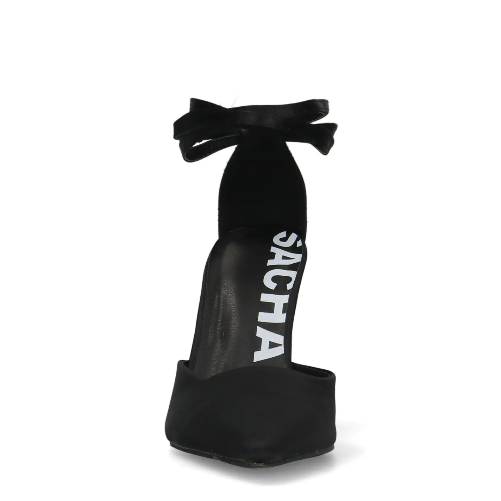 Deze Zwarte Pumps Van Sacha Hebben Een Sophisticated Satin-Look En Een Dubbel Geknoopt Enkelbandje. Perfect Tijdens Holiday Season Of Gewoon Onder Je Cropped Jeans! De Pumps Hebben Een Spitse Neus En Een Rechte Hak Van 9 Cm. Maak Gebruik Van De Juiste Onderhoudsproducten.