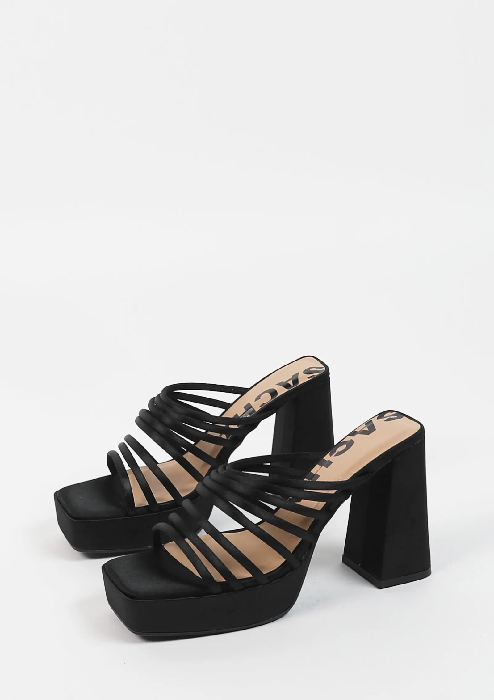 Zwarte Satin Sandalen Met Plateau Hak^Sacha Clearance