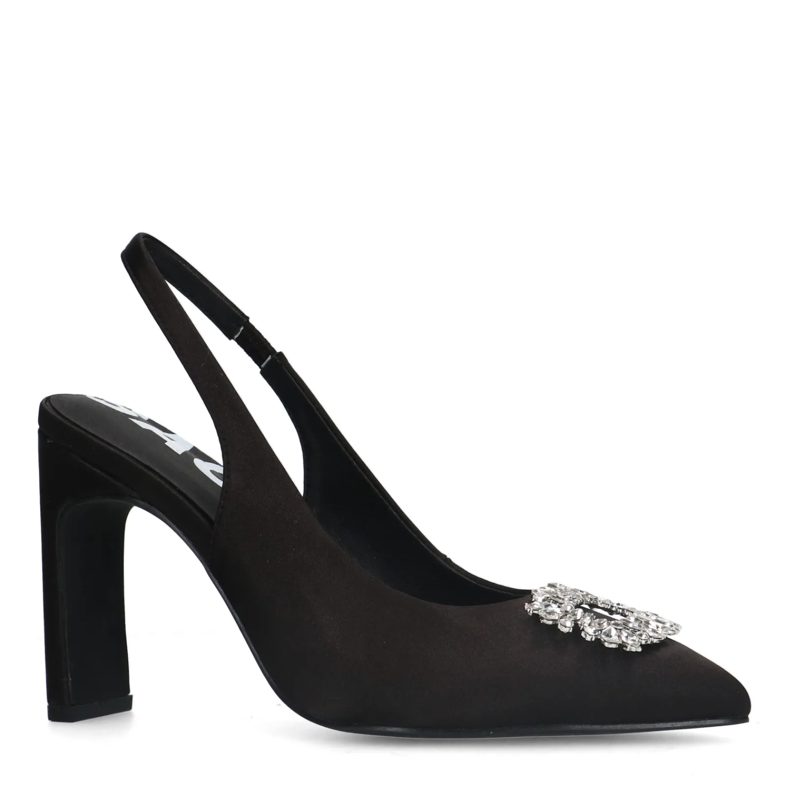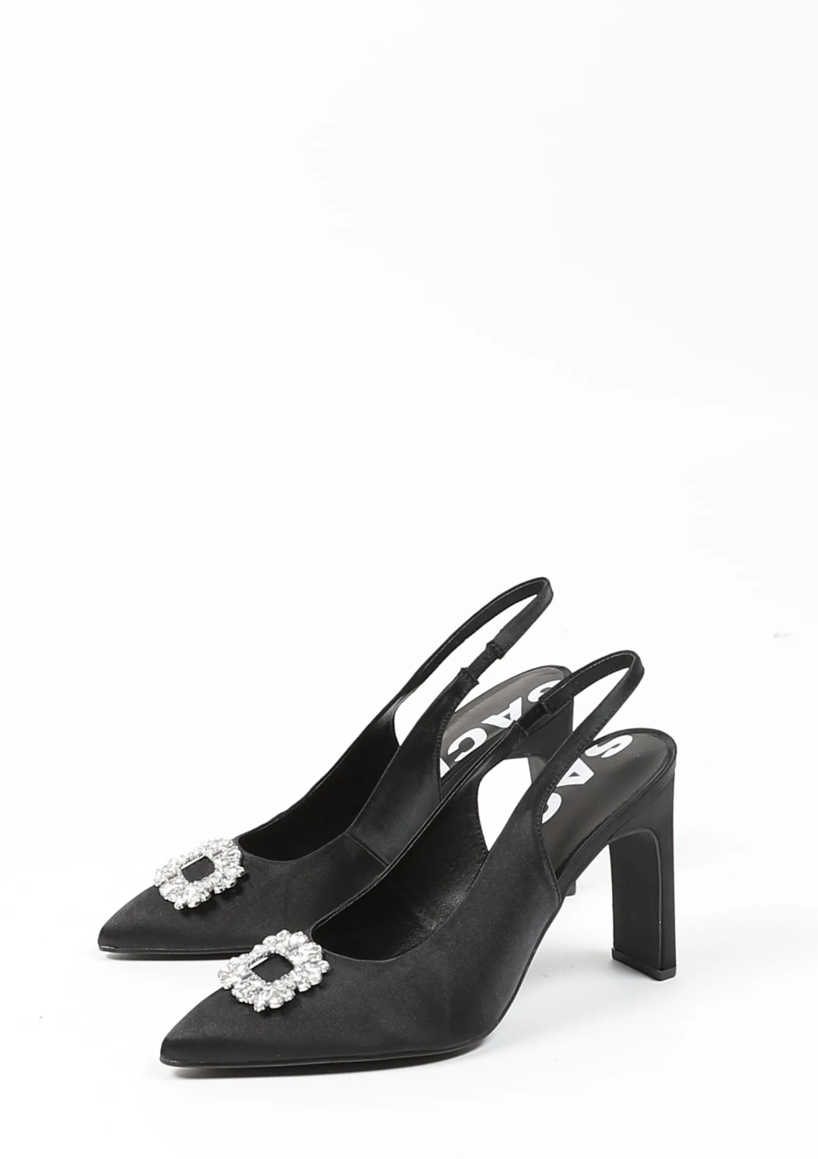 Deze Zwarte Stijlvolle Slingback Pumps Van Sacha Hebben Een Vierkant Strass Detail Op De Puntige Neus Van De Pumps. Dit Wordt Gecombineerd Met Een Rechte Hak Van 10 Cm En Een Open Hiel. De Pumps Zijn Gemaakt Van Synthetisch Materiaal. Maak Gebruik Van De Juiste Onderhoudsproducten.