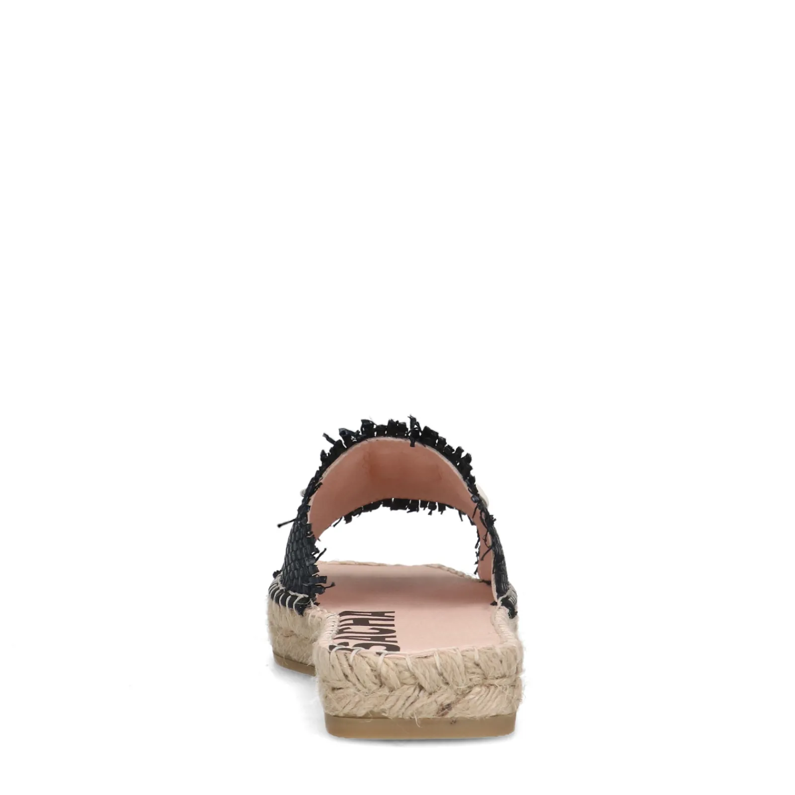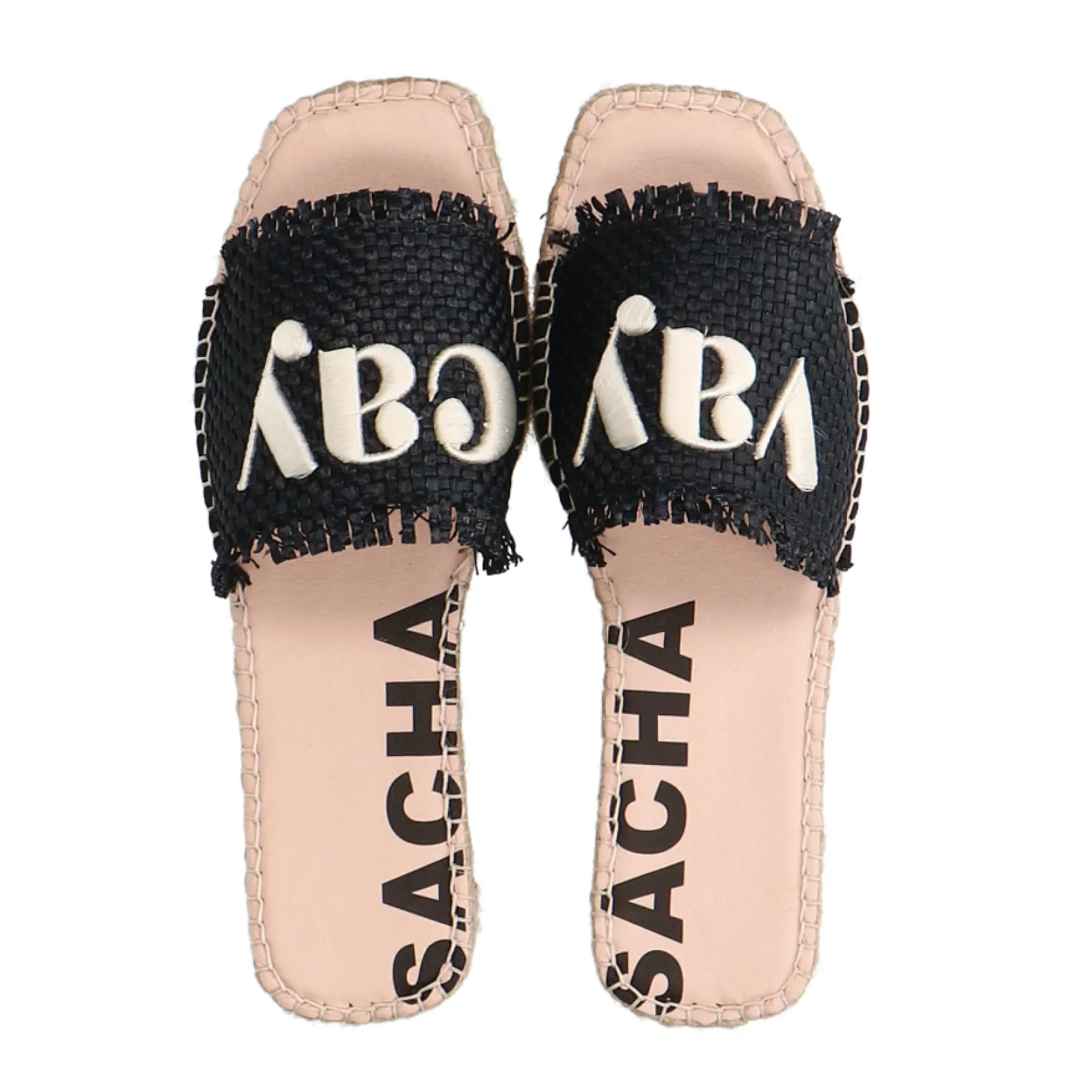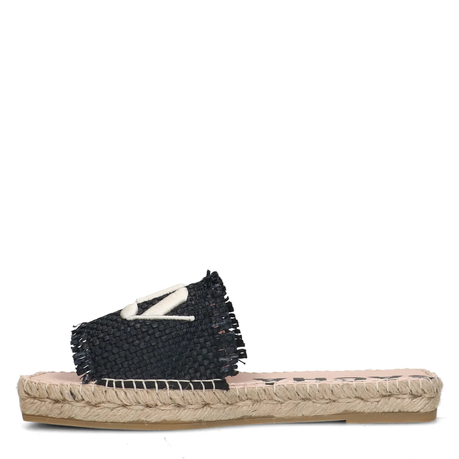 Deze Zwarte Slippers Van Sacha Zijn De Perfecte Summer Musthave! De Slippers Hebben Een Brede Band Van 9 Cm En Een Touwzool Met Een Dikte Van 2 Cm. De Slippers Zijn Gemaakt Van Synthetisch Materiaal.