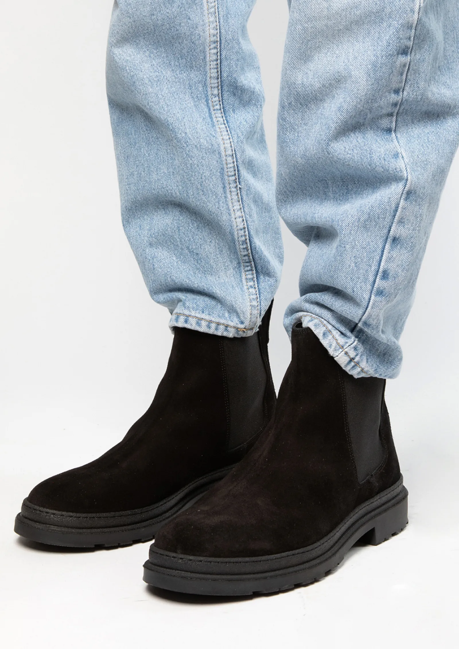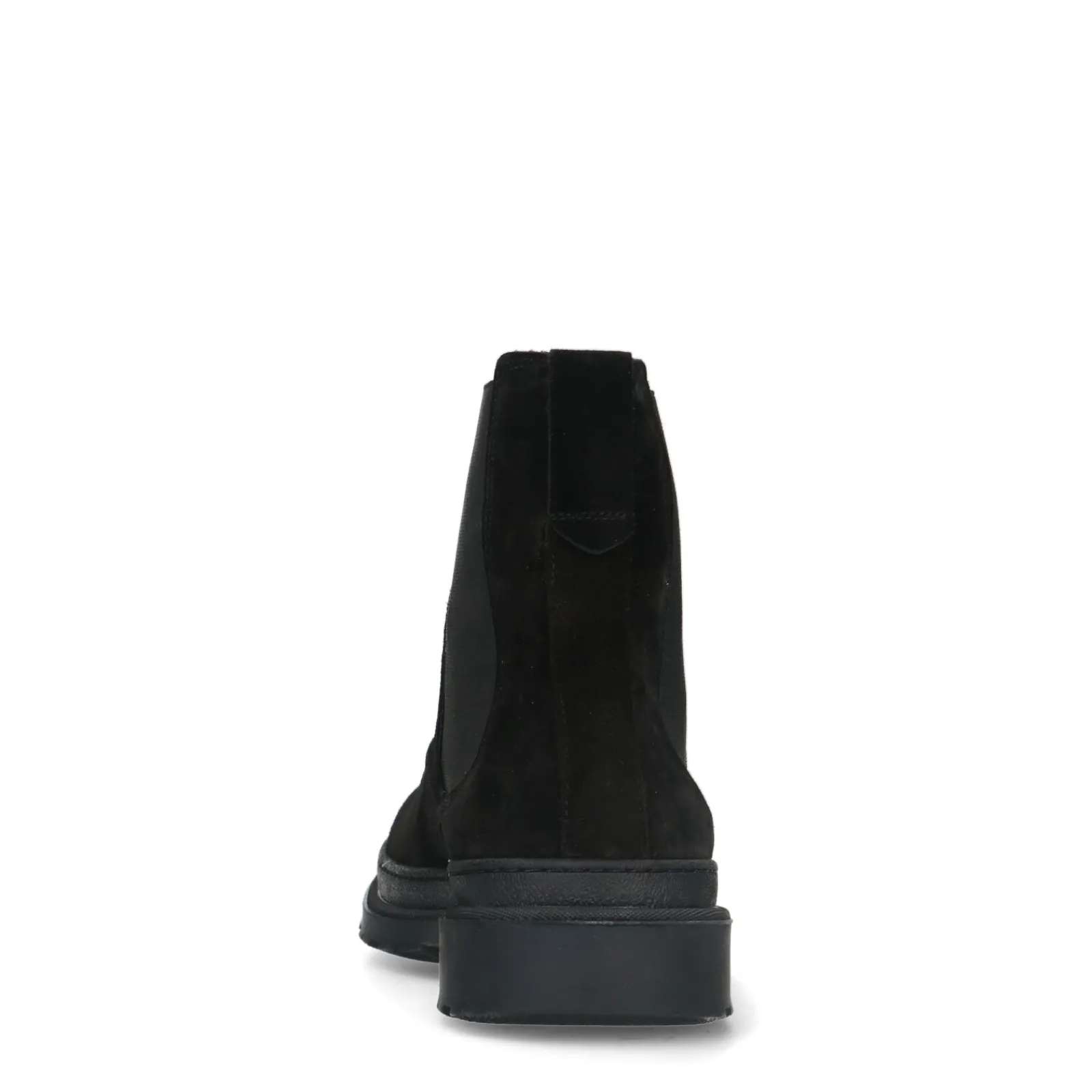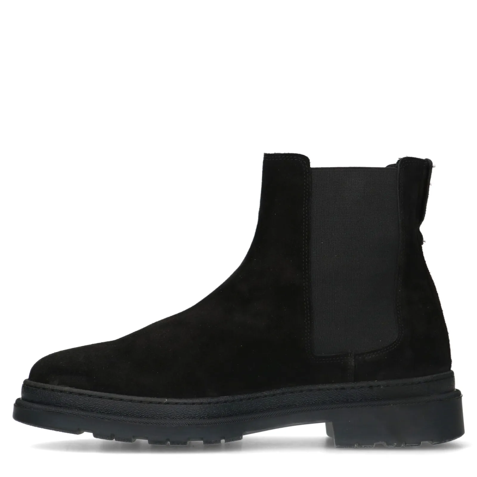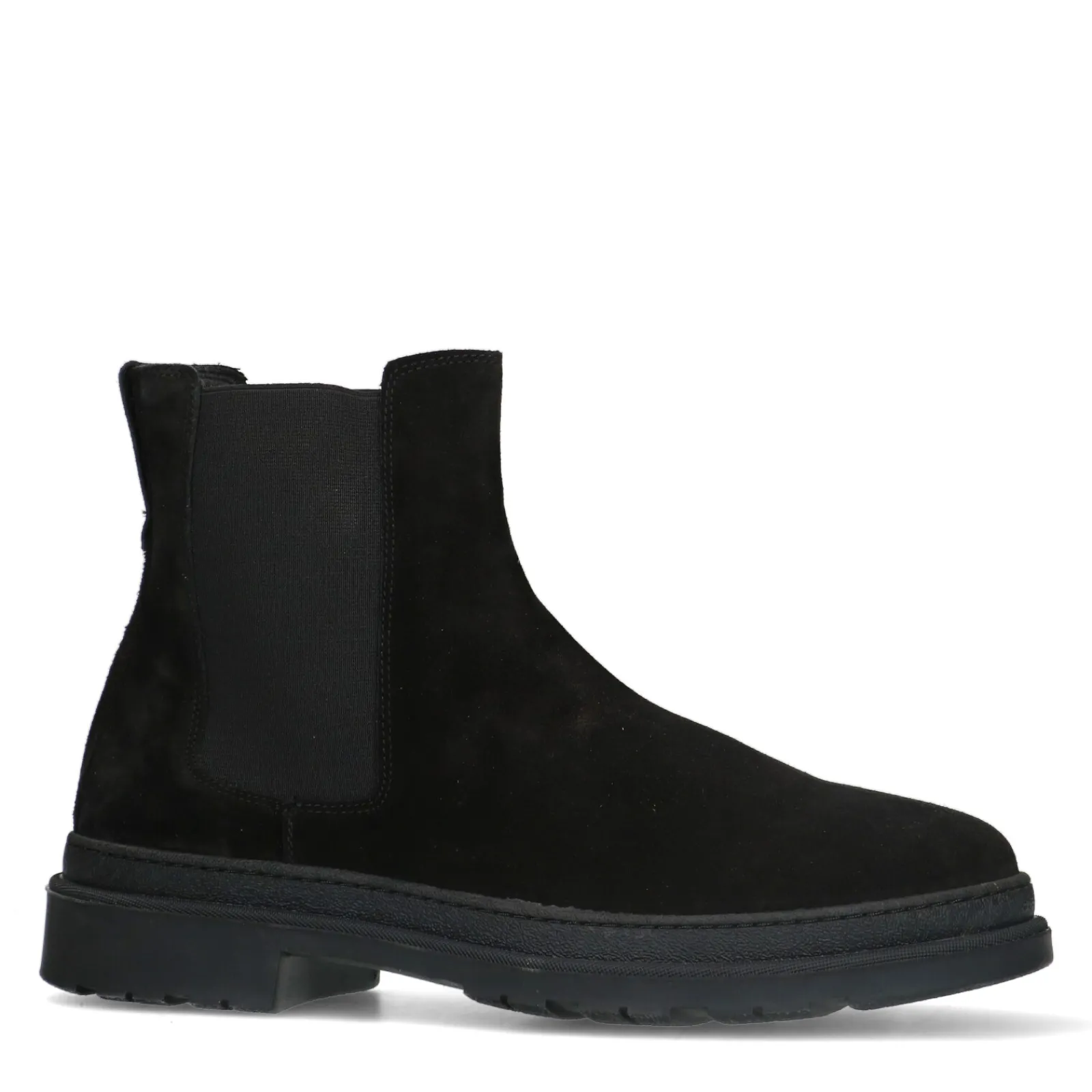 Zwarte Suede Chelsea Boots Van Sacha. Deze Boots Zijn Aan De Buitenzijde Gemaakt Van Suede En Aan De Binnenzijde Van Leer. De Chelsea Boots Hebben Een Hakhoogte Van 3 Cm En Een Plateauhoogte Van 1 Cm. De Schachthoogte Is 15 Cm. De Schachtomtrek Meet 29 Cm. Combineer De Chelsea Boots Bijvoorbeeld Met Je Favoriete Jeans En Een Overhemd Voor Een Casual Look. Maak Gebruik Van Onderhoudsproducten Zoals Collonil Carbon Pro.