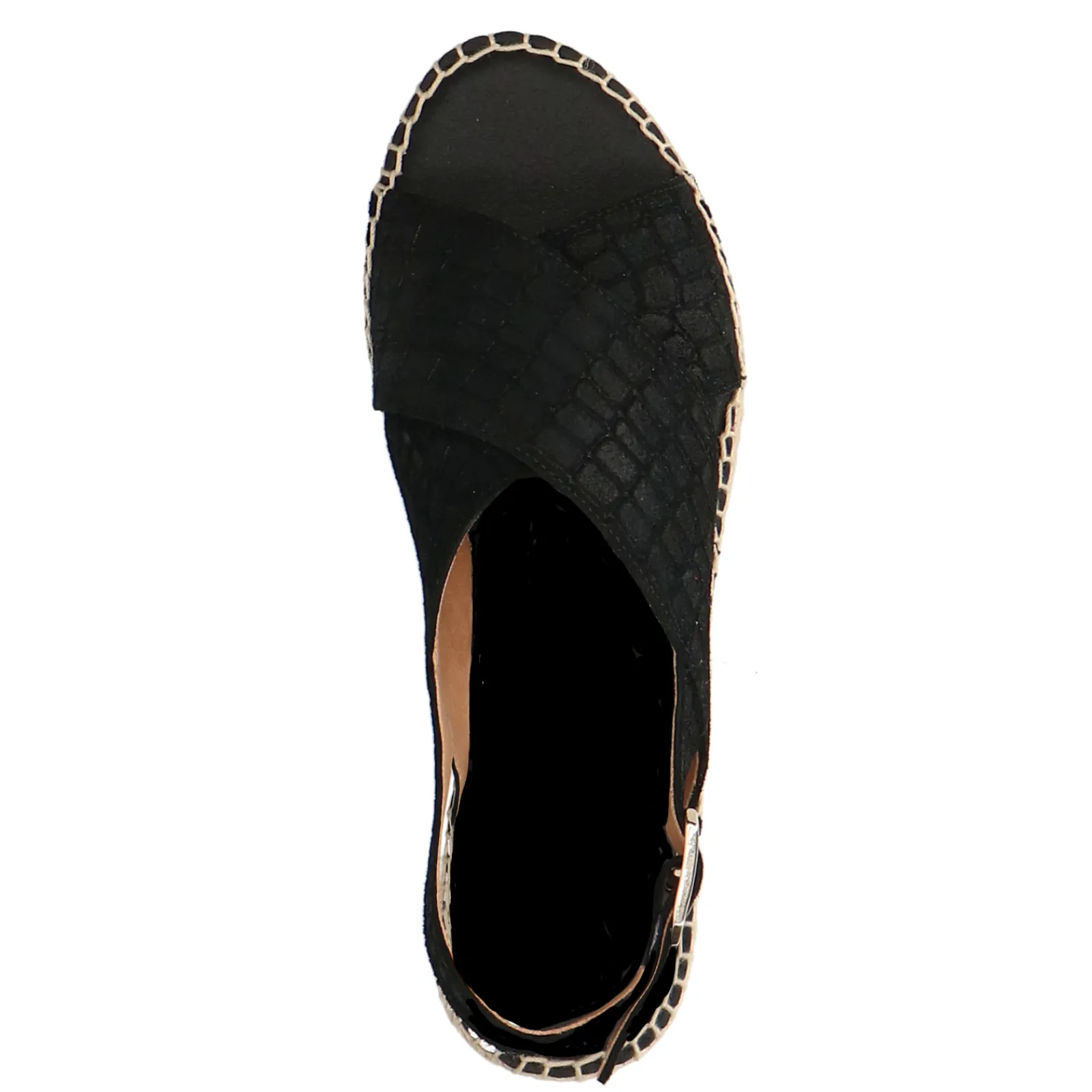 Summer Ready Met Deze Zwarte Suede Plateau Sandalen Van Sacha! De Sandalen Zijn Aan De Buitenzijde Gemaakt Van Suede En Aan De Binnenzijde Van Leer. De Plateau Zool Is Gemaakt Van Gewoven Touw Met Een Hoogte Van 4 Cm. Het Design Heeft Een Subtiele Croco Print Voor Een Unieke Twist. Maak Gebruik Van De Juiste Onderhoudsproducten!