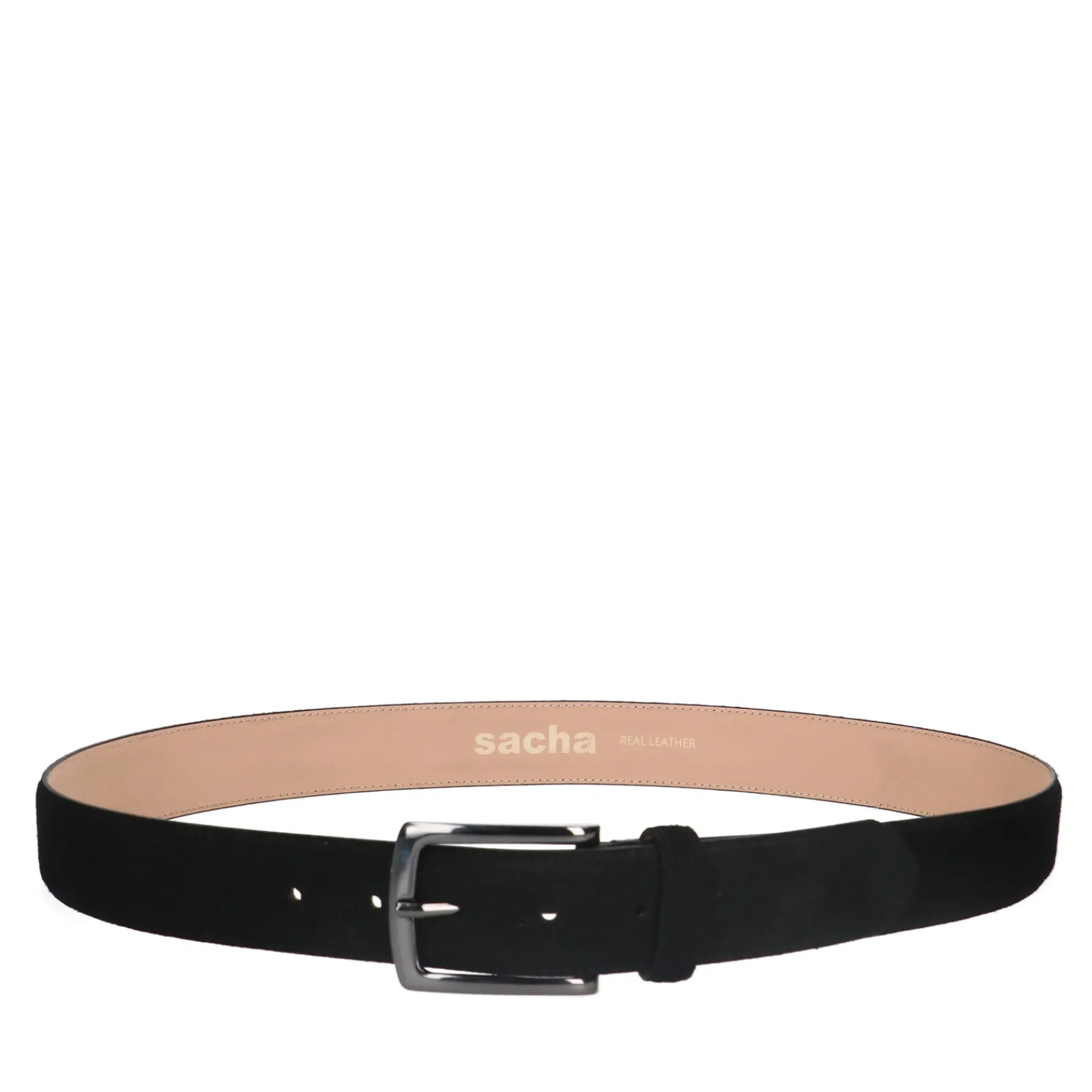 Deze Zwarte Heren Riem Van Sacha Heeft Een Suede Buitenzijde En Een Grijze Gesp. De Band Heeft Een Breedte Van 3,5 Cm.